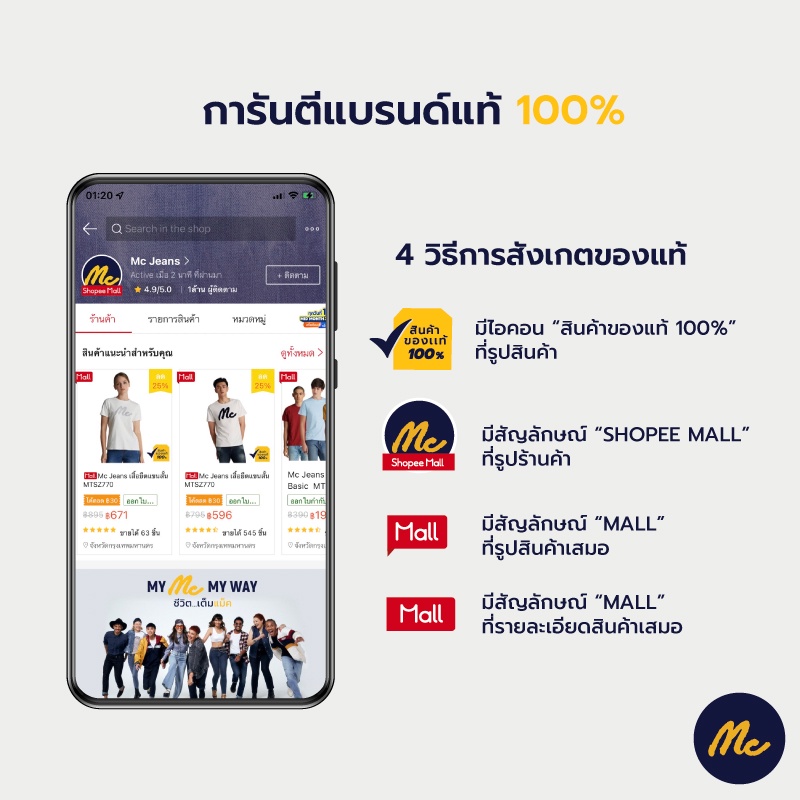 กางเกงยีนส์ทรงขาตรง เอวกลาง สีอ่อนฟอกขัด เดินด้ายสีทอง ที่ตัดกับสีผ้ายีนส์ กระเป๋าทรงเหลี่ยม ปักโลโก้เอกลักษณ์ MC JEANS การดูแลรักษา ซักไม่เกิน 30 องศาเซลเซียส ห้ามใช้สารฟอกขาว รีดไฟอ่อน ซักแห้ง ห้ามปั่นแห้ง ควรแยกซัก