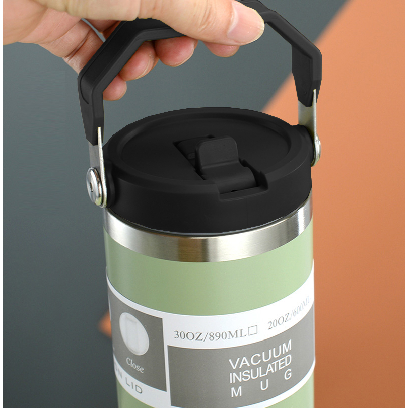 รุ่นใหม่ล่าสุด แก้วเก็บอุณหภูมิ พร้อมหูหิ้ว แก้วเก็บความเย็น แบบใหม่มีที่จับ หูหิ้ว แก้วกาแฟ แก้วสแตนเลส304 /890ml