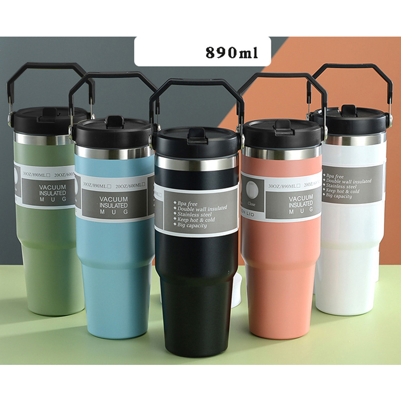 แก้วเก็บความเย็น แบบใหม่มีที่จับ หูหิ้ว แก้วกาแฟ แก้วสแตนเลส304 890ml ขนาด 890 ml 24.3*9 cm (การวัดด้วยมืออาจเกิดจากข้อผิดพลาดบางประการ) พร้อมส่ง