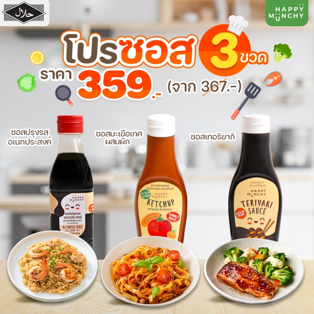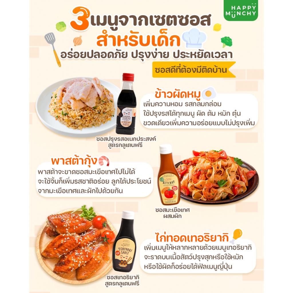Happy Munchy ซอสอเนกประสงค์ ซอสมะเขือเทศ ซอสเทอริยากิ พะโล้ น้ำจิ้มไก่ บาร์บีคิว สำหรับเด็ก 1 ขวบ+