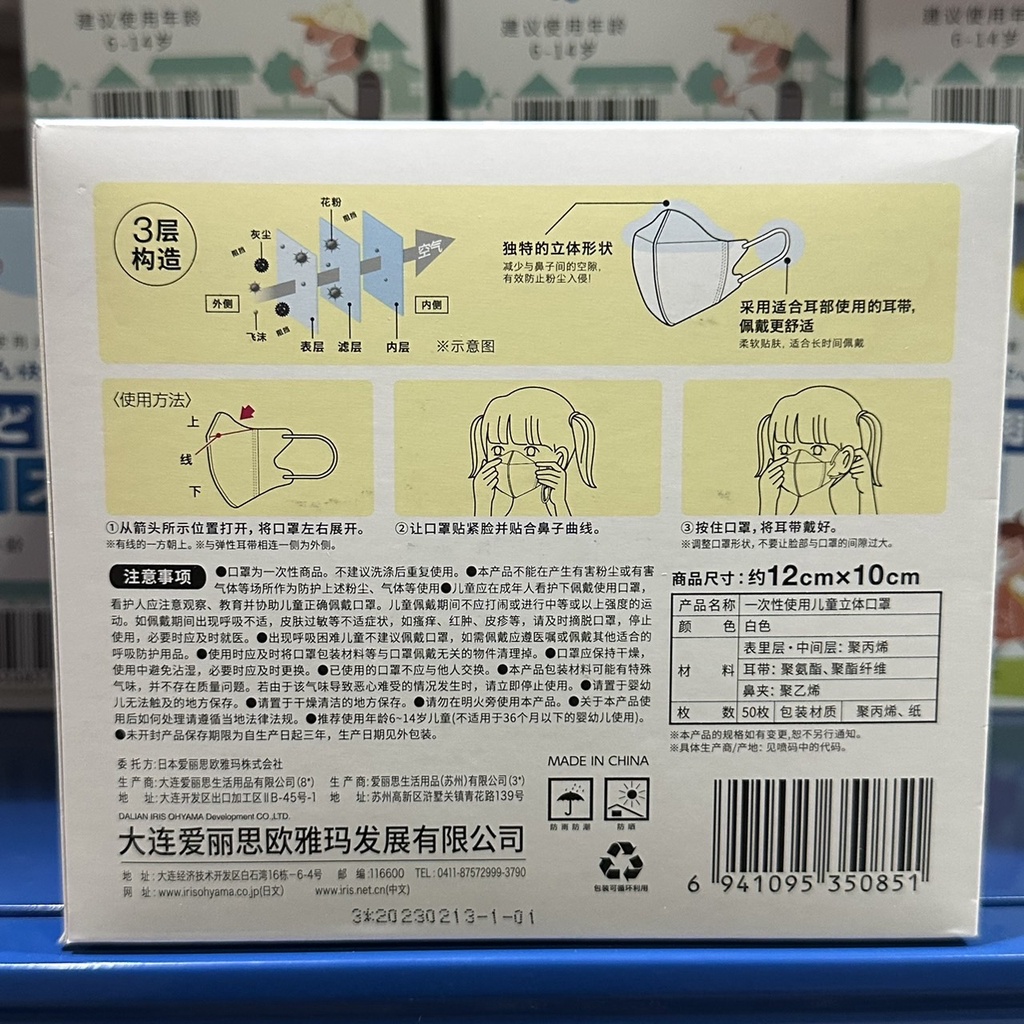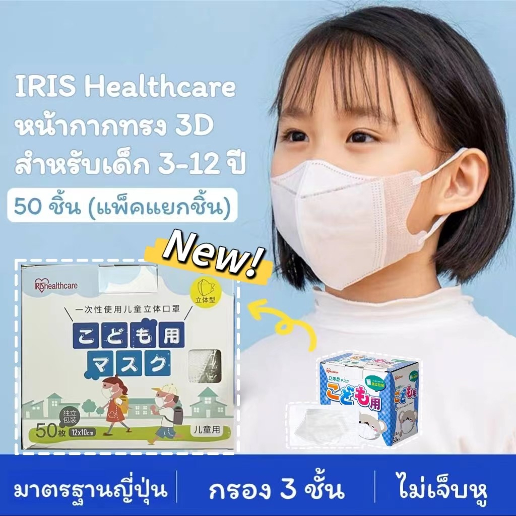 (ส่งแบบสุ่ม) หากกล่องสินค้าเก่าหมดทางร้านจะส่งกล่องสินค้าใหม่ไปให้ ขนาดหน้ากากก็เท่ากัน กล่องสินค้ามี 2 รุ่น หน้ากากเด็กญี่ปุ่น 3D mask 1กล่อง50ชิ้น เหมาะสำหรับเด็กอายุ 4-14ปี size:120mm*100mm Filter efficiency >=95% #Irishealthcare