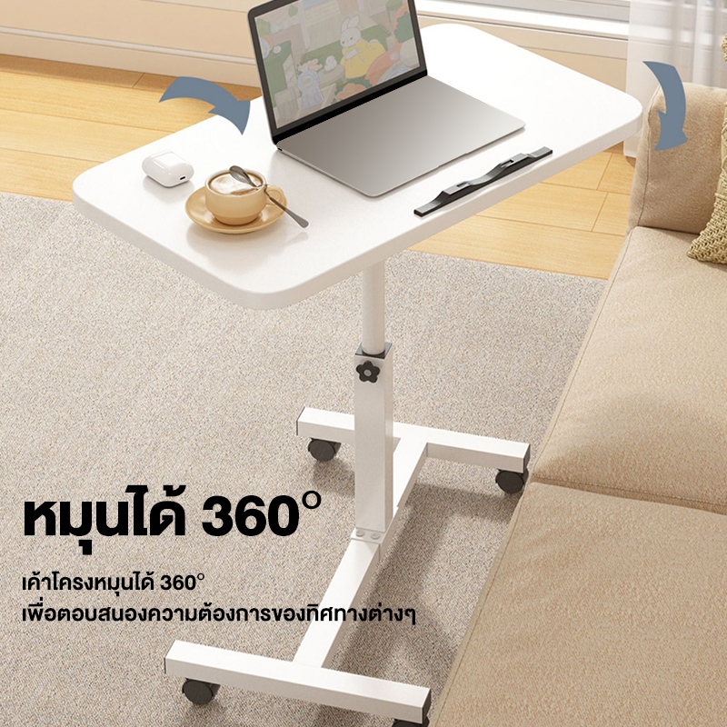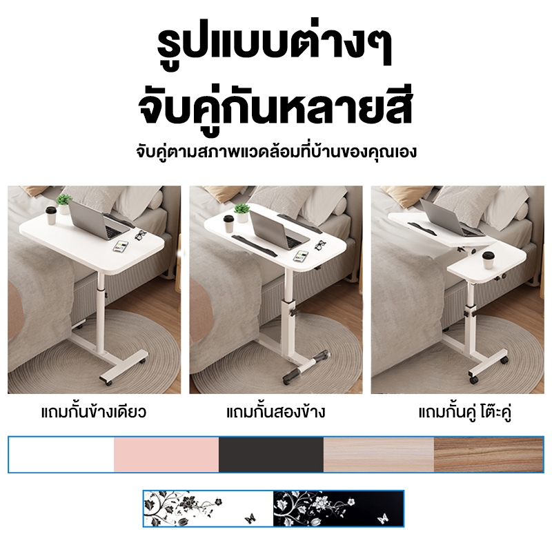 MMY โต๊ะข้างเตียง โต๊ะคอมข้างเตียง มันขยับได้มีล้อ ยกขึ้นลงได้ 60*40cm bedside table ประกอบง่าย รับน้ำหนักได้ 300KG