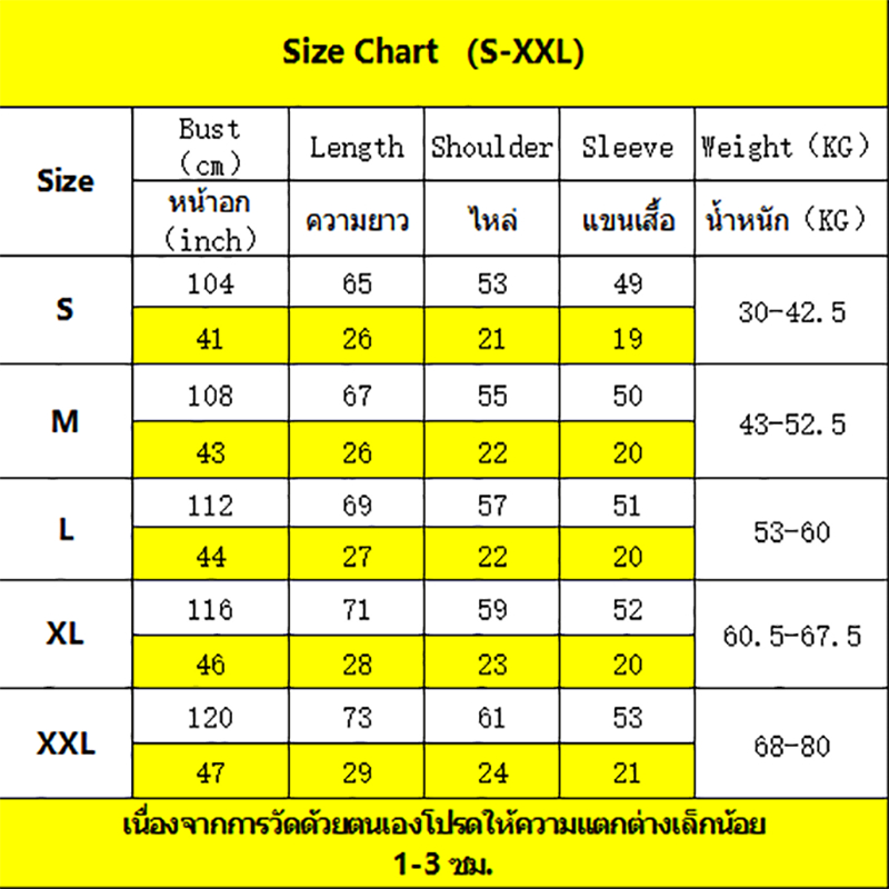 ... ก 104cm(41นิ้ว)/// ไหล่ 53cm(21นิ้ว)/// แขน 49cm(19นิ้ว) M: ความยาว 67cm(26นิ้ว)///หน้าอก 108cm(43นิ้ว)/// ไหล่ 55cm(22นิ้ว)/// แขน 50cm(20นิ้ว) L: ความยาว 69cm(27นิ้ว)///หน้าอก 112cm |(44นิ้ว)/// ไหล่ 57cm(22นิ้ว)/// แขน 51cm(20นิ้ว) Xl: ความยาว 71cm(28นิ้ว) ///หน้าอก 116cm(46นิ้ว) /// ไหล่ 59cm(23นิ้ว)/// แขน 52cm(20นิ้ว) 2xl: ความยาว 73cm (29นิ้ว)///หน้าอก 120cm(47นิ้ว)/// ไหล่ 61cm(24นิ้ว)/// แขน 53cm(21นิ้ว) 🌈 ยินดีต้อนรับสู่ร้านค้าของเราคะ 🌈 ติดตามร้านค้าเพื่อรับคูปองคะ 。◕‿◕。 🌈 หากคุณพอใจกับผลิตภัณฑ์และบริการของเรา ขอให้คำชมเชยระดับห้าดาวนะจ๊ะ🙏 💕ต้องใส่! เป็นที่นิยมในปี 2024! 💕ใส่สบายม๊ากก ผ้านิ่มทรงสวย งานดีนะค้าาา สมราคาจ้า 💕ดีไซน์สวย เก๋ มีเอกลักษณ์ 💕เป็นของขวัญที่ดีสำหรับคนรักหรือตัวคุณเอง ❣️คุณภาพและราคาแบบนี้หาไม่ได้จากที่อื่นนะคะ คุ้มมากๆจ้า ❣️ ❣️เนื่องจากอุปกรณ์แสดงผลและแสงที่แตกต่างกัน รูปภาพอาจไม่สะท้อนสีจริงของผลิตภัณฑ์ทั้งหมด ขอขอบคุณสำหรับความเข้าใจของคุณ❣️ ❣️การให้คะแนน 1 หรือ 2 ดาว โดยไม่ใส่เหตุผล/รูปภาพประกอบ หรือใส่อะไรที่ไม่เป็นความจริง ทำให้ร้านค้าเสื่อมเสียชื่อเสียง ทางร้านจะไม่ช่วยเหลือใดๆ ทั้งสิ้น เพราะถือว่าท่านเข้ามาเพื่อดิสเครดิตร้านโดยเฉพาะ ขอบคุณค่ะ สนใจสั่งซื้อสินค้าหรือสอบถามเพิ่มเติมได้ค่ะ ❣️