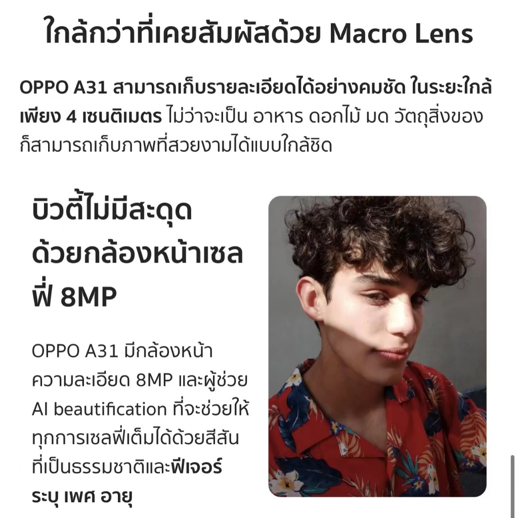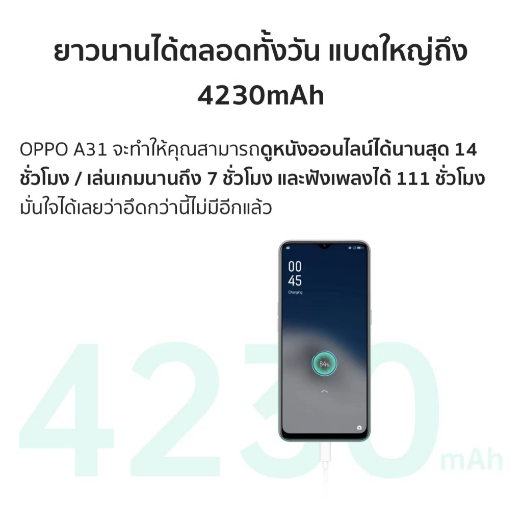 พร้อมส่ง *มือถือ OPPO A31 แรม 6GB รอม 128GB หน้าจอHd 6.5 นิ้ว เอนดอย 9.0 แบตเตอรี่ 4230 mAh