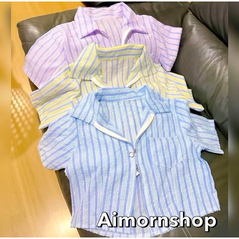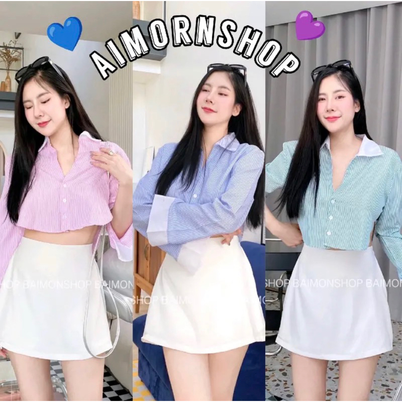 🔥aimornshop🔥เสื้อเชิ้ตคอปก เชิ้ตครอปเว้าข้าง🌈🌈🌈🌈ใส่แล้วดูดีมากๆ เนื้อดีใส่สบาย