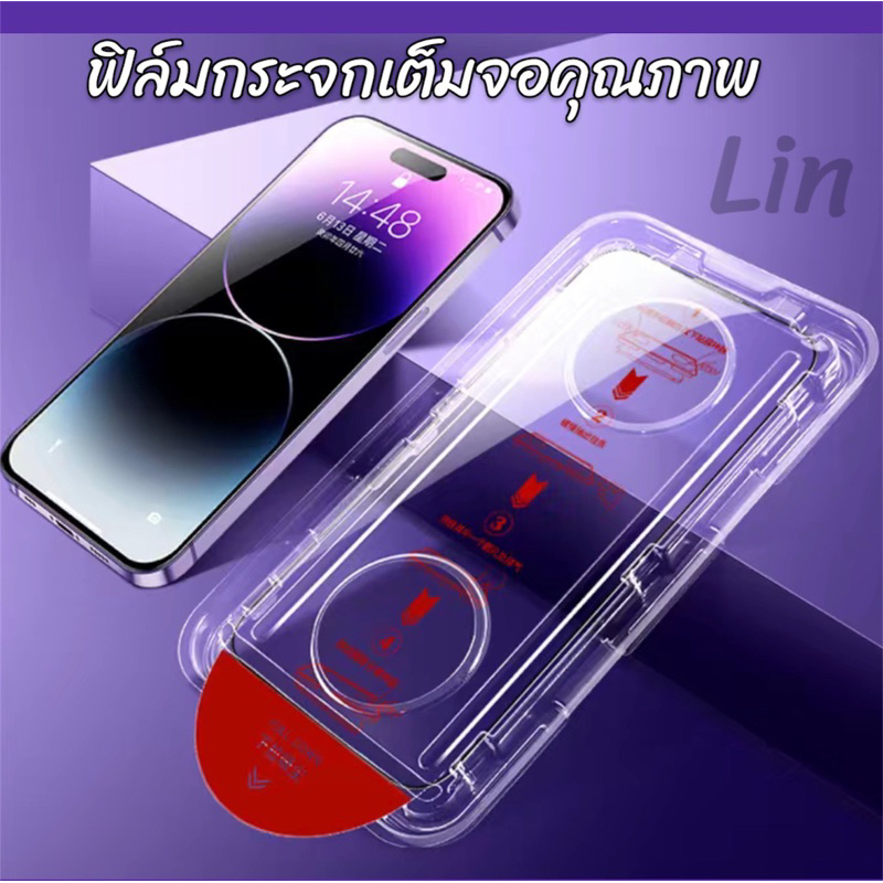 W ฟิล์มกระจก สำหรับ iPhone แบบเต็มจอ มีบล็อกติดง่าย กันฝุ่นเข้า 6 7 8 x xs xr xsm 11 12 13 14 15 pro promax mini plus