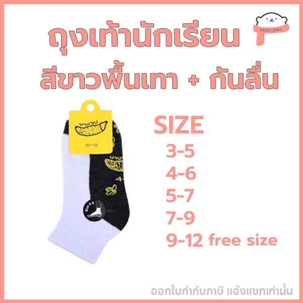 ถุงเท้านักเรียน ตราบานาเน่ สินค้าคุณภาพดี ราคาถูกที่สุด!! ราคานี้ออกใบกำกับภาษีได้ (ไม่มีบวกเพิ่ม) ผลิตในประเทศไทย ถุงเท้าใช้งานได้นานกว่าแบรนด์ทั่วไป ไม่ย้วยง่าย นุ่มสบายขณะสวมใส่ มีถุงเท้าทั้งหมด 3แบบ 1. สีขาว พื้นเทา + กันลื่น 2. สีขาว พื้นเทา (ไม่กันลื่น) 3. สีน้ำตาล (ไม่กันลื่น) มีทั้ง