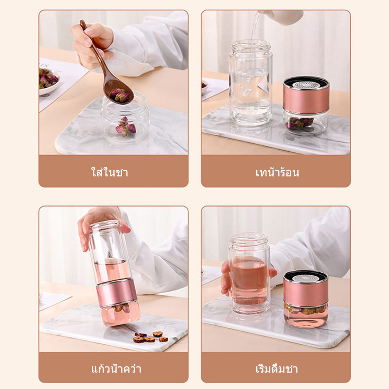 500ml กระบอกน้ำชา กระบอกชงชา กระจกสองชั้น ขวดชาพร้อมตัวกรอง แก้วกรองชาร้อน กระบอกชงชา แก้วชงชา กระบอกชงชาพกพา