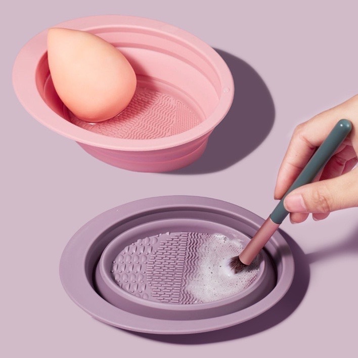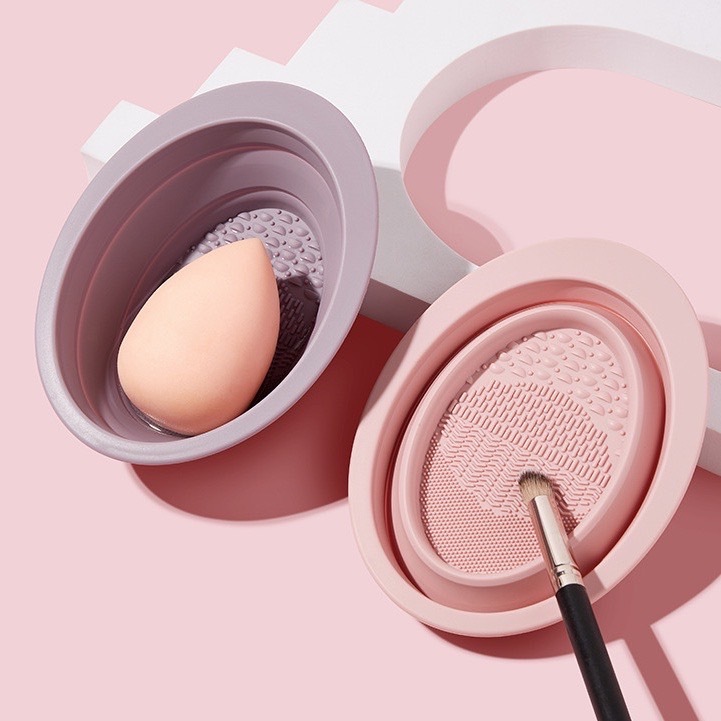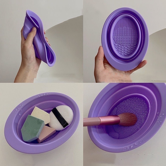 E137 ซิลิโคนล้างแปรงแต่งหน้า สําหรับทําความสะอาด พับได้ แบบพกพา