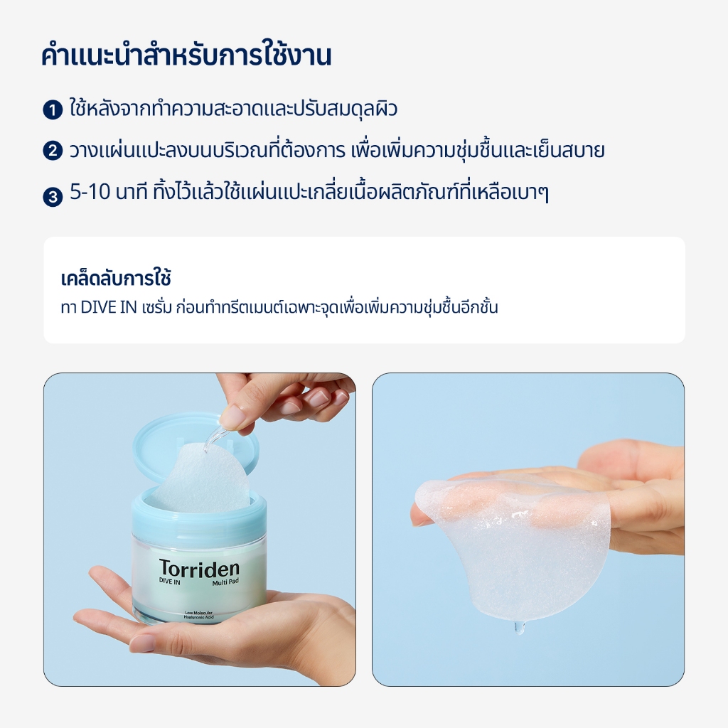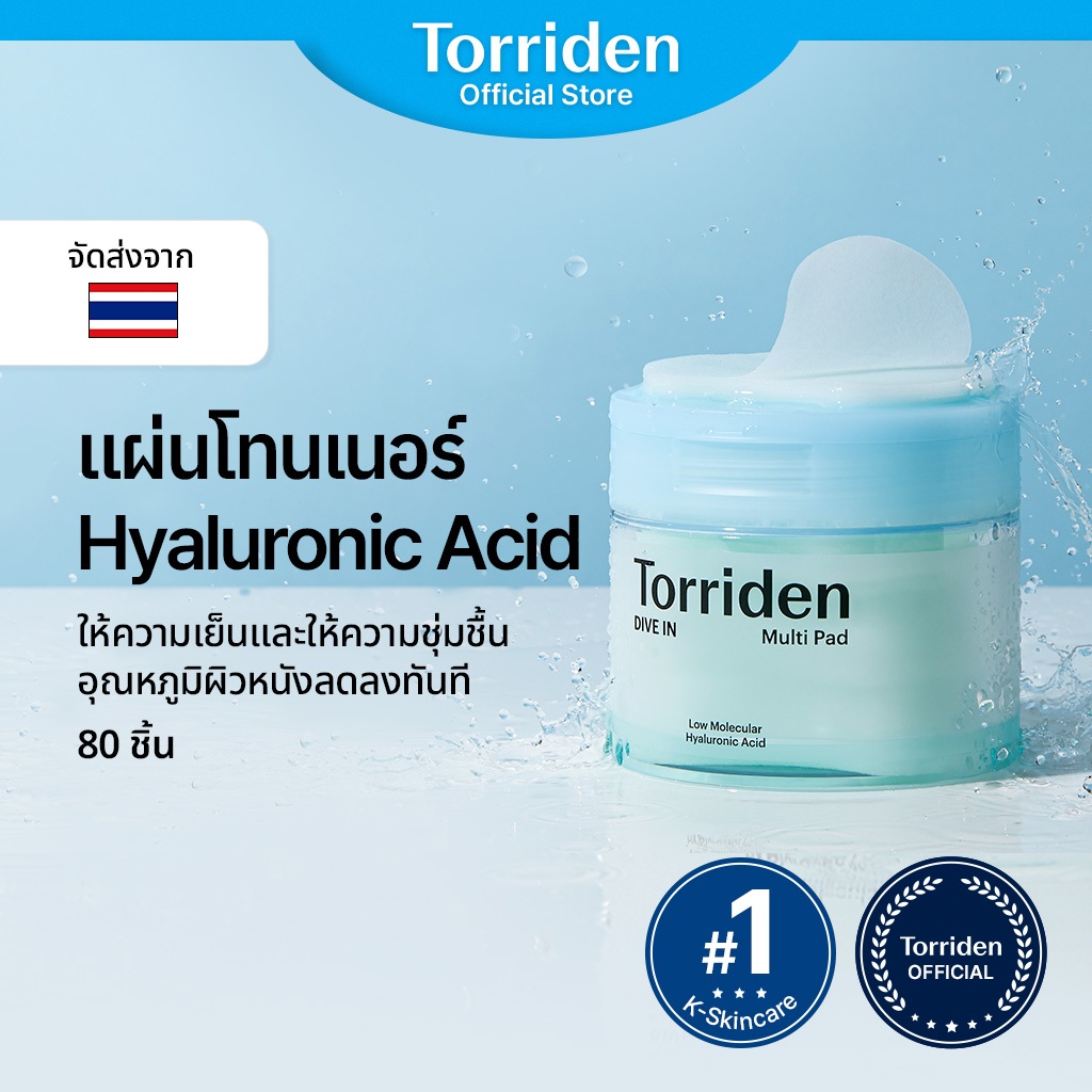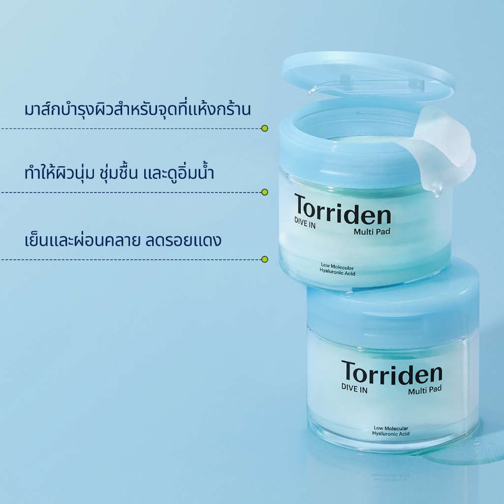 [Torriden Official] DIVE IN Hyaluronic Acid - แผ่นมาสก์นุ่มมัลติกรดไฮยาลูโรนิกโมเลกุลต่ำสำหรับการลดขนาดรูขุมขนและบรรเทารอยแดงและขัดผิว, แผ่นโทนเนอร์, 80 แผ่น