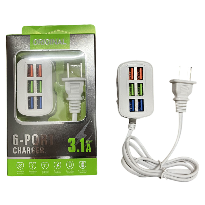 อะแดปเตอร์ชาร์จโทรศัพท์มือถือ120W 6 USB 3.1A เต้าเสียบปลั๊กไฟมัลติฟังก์ชั่น แบบชาร์จเร็ว สําหรับโทรศัพท์มือถือ