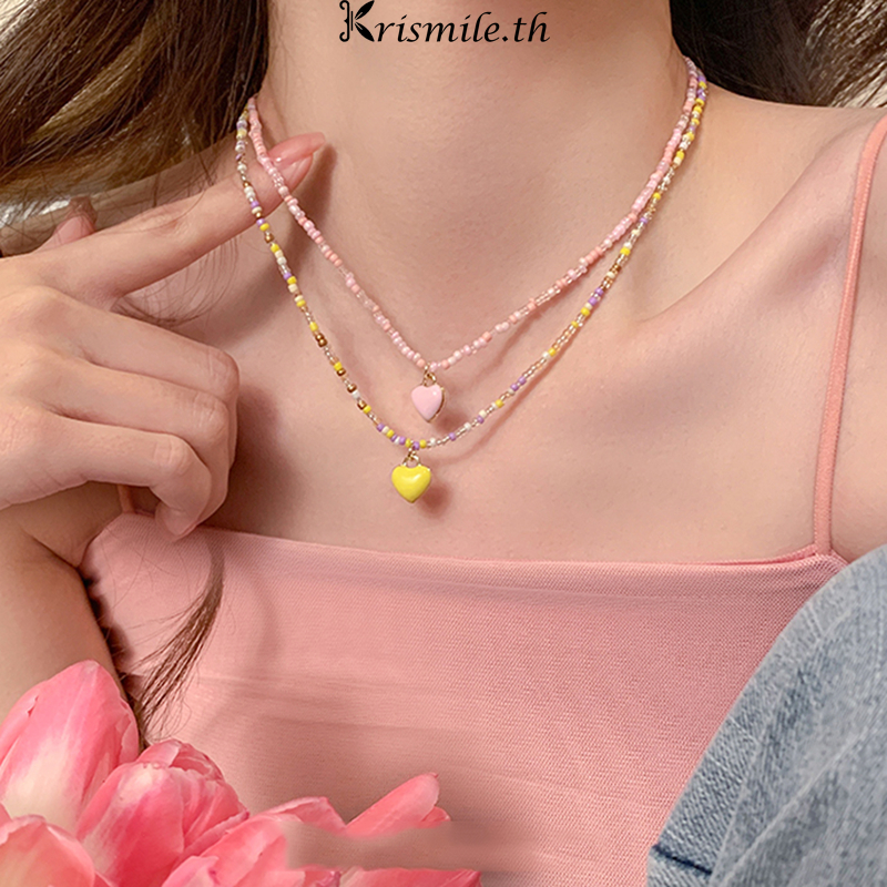 COD-ในไทย💖สร้อยคอ จี้ลายหัวใจผีเสื้อ ลูกปัที่มีสีสัน น่ารักแฟชั่น y2kสไตล์เกาหลี ปรับขนาดได้ ไม่ทําให้แพ้ง่ายสำหรับผู้หญ