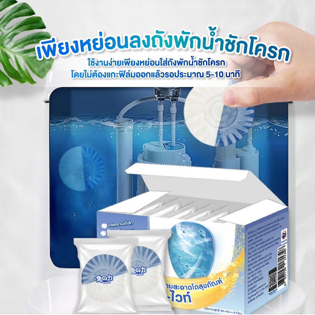 ... พึงประสงค์ กลิ่นเหม็นอับได้ดี ป้องกันและลดการเกิดตะกรัน ขจัดคราบสกปรกตกค้าง คราบขาว คราบปัสสาวะ คราบประจำเดือน ทำให้บรรยายกาศในห้องน้ำดีขึ้น สดชื่น ไม่เหม็นอับอีกต่อไป ตัวผลิตภัณฑ์ไม่ทำลายหรือกัดกร่อนวัสดุ อุปกรณ์ใด ใช้งานง่าย ปลอดภัย ข้อควรระวัง : 1.โปรดเก็บให้พ้นจากมือเด็กและสัตว์เลี้ยง 2.ระหว่างใช้งานระมัดระวัง ห้ามให้ผลิตภัณฑ์สัมผัสกับดวงตา หากเข้าตาต้องรีบล้างออกด้วยน้ำสะอาดทันที 3.ห้ามใช้ร่วมกับสารฟอกขาวหรือสารเคมีอื่น ๆ เพื่อหลีกเลี่ยงการเกิดก๊าซที่เป็นอันตราย 4.โปรดล้างมือด้วยสบู่ เจลล้างมือทันทีหลังใช้งานผลิตภัณฑ์ วิธีการใช้งาน - แกะออกจากแพ็ค -ใส่ลงถังพักน้ำชักโครก โดยไม่ต้องแกะพลาสติกหุ้มออก *อายุการใช้งานขึ้นอยู่กับจำนวนครั้งที่กดชักโครก