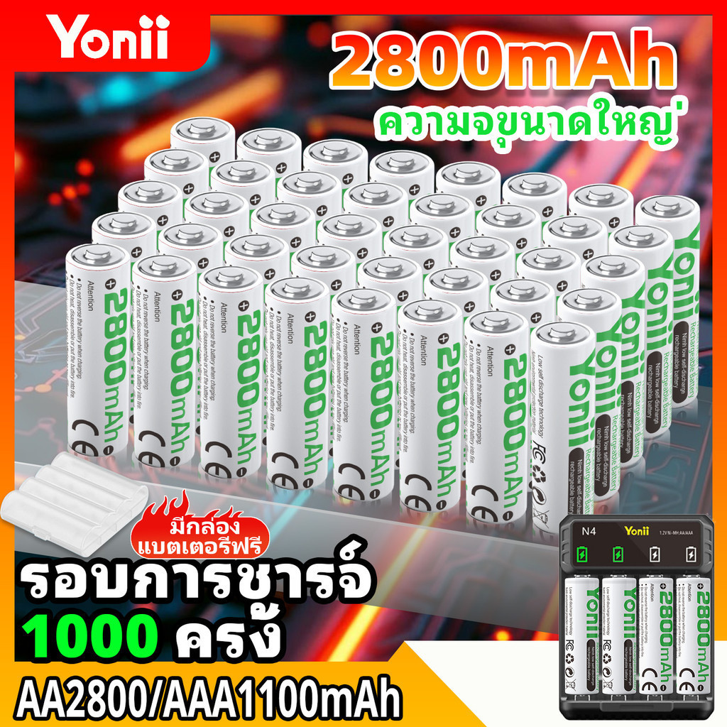 - สินค้าประเภท : ถ่านชาร์จ -ยี่ห้อ :Yonii - ประเภท : Ni-MH 1.2V 2800/1100mAh - ขนาด : AA/AAA - ความสามารถในการชาร์จ :1,500+ ครั้ง