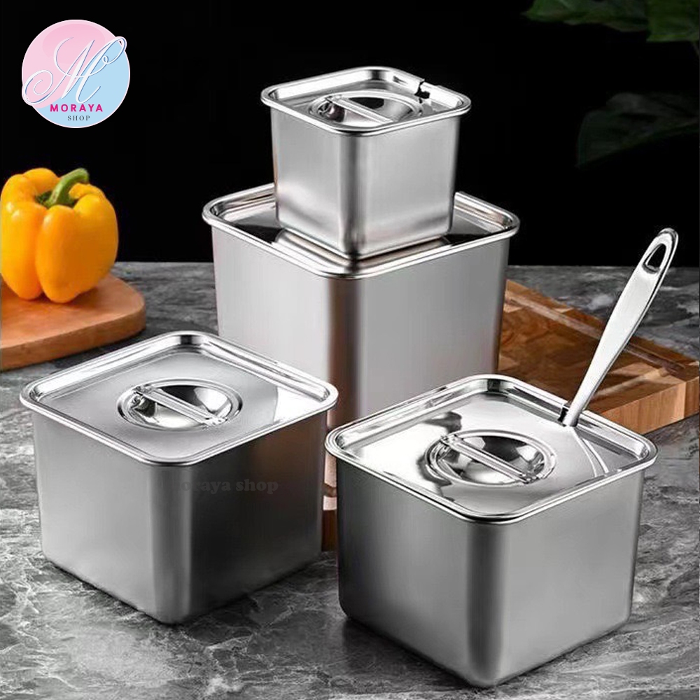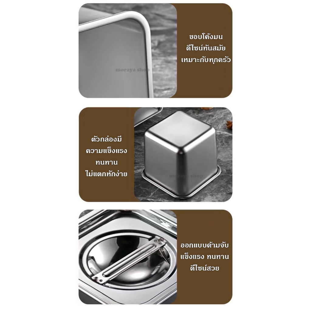 MoraYa Shop กล่องเก็บอาหาร กล่องใส่อาหาร กล่องถนอมอาหาร สแตนเลส มีฝาปิด ดีไซน์ทันสมัย ขนาด 900 1600 2400 3400 ml.