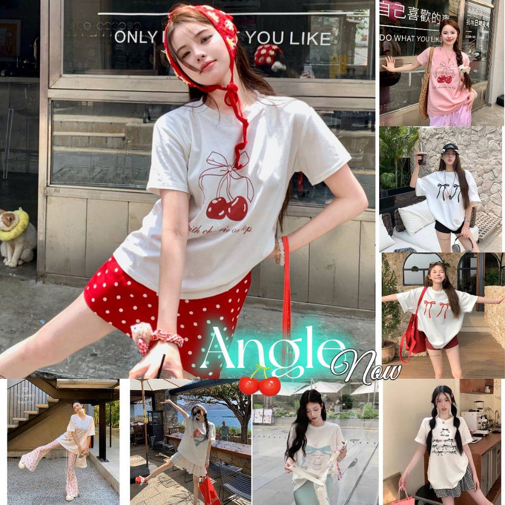 (จัดส่งตลอด 24 ชั่วโมง)Angle Official 🎀 เสื้อยืดโบว์ ลายใหม่ล่าสุด (TC)