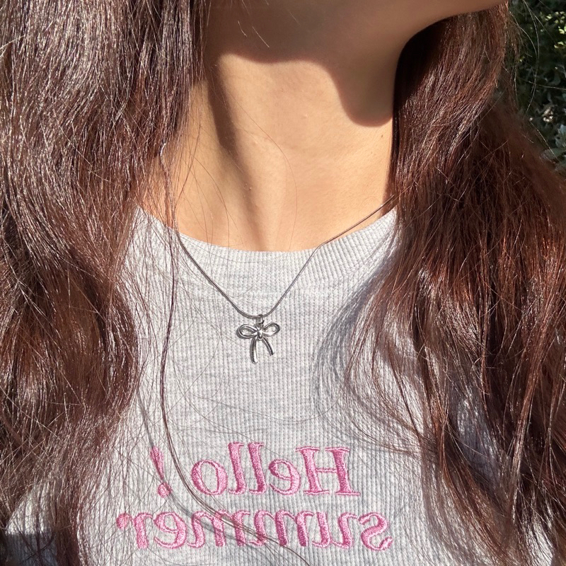 Piing me stainless steel necklace | สร้อยคอสแตนเลสพร้อมจี้โบว์✨🎀🎄 (พร้อมส่ง)