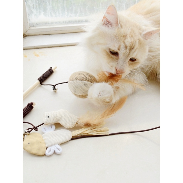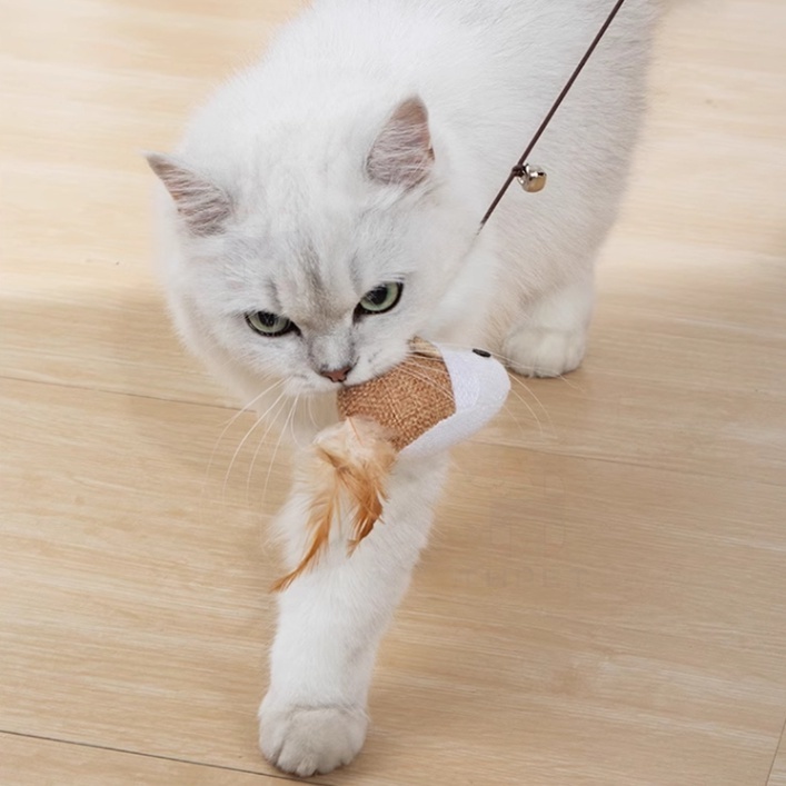 ไม้ตกแมว ไม้ล่อแมวแบบไม้ ราคาถูกสุดๆ 📍 ขนาด : ความยาวด้ามจับไม้ 40 cm. 📍 ขนาด : ความยาวเชือก 55 cm. - พร้อมส่ง ครับบ - ด้ามถือ จากไม้ธรรมชาติ แข็งแรงแต่เบาไม่หนักมือ - มีเสียงกระดิ่ง กระตุ้นแมวให้สนใจ - ตัวหนูน้อยเป็นวัสดุที่ทำจากผ้า ส่วนหางหนูเป็นขนนก - ตัวลูกบอลเป็นวัสดุที่ทำจากผ้า ส