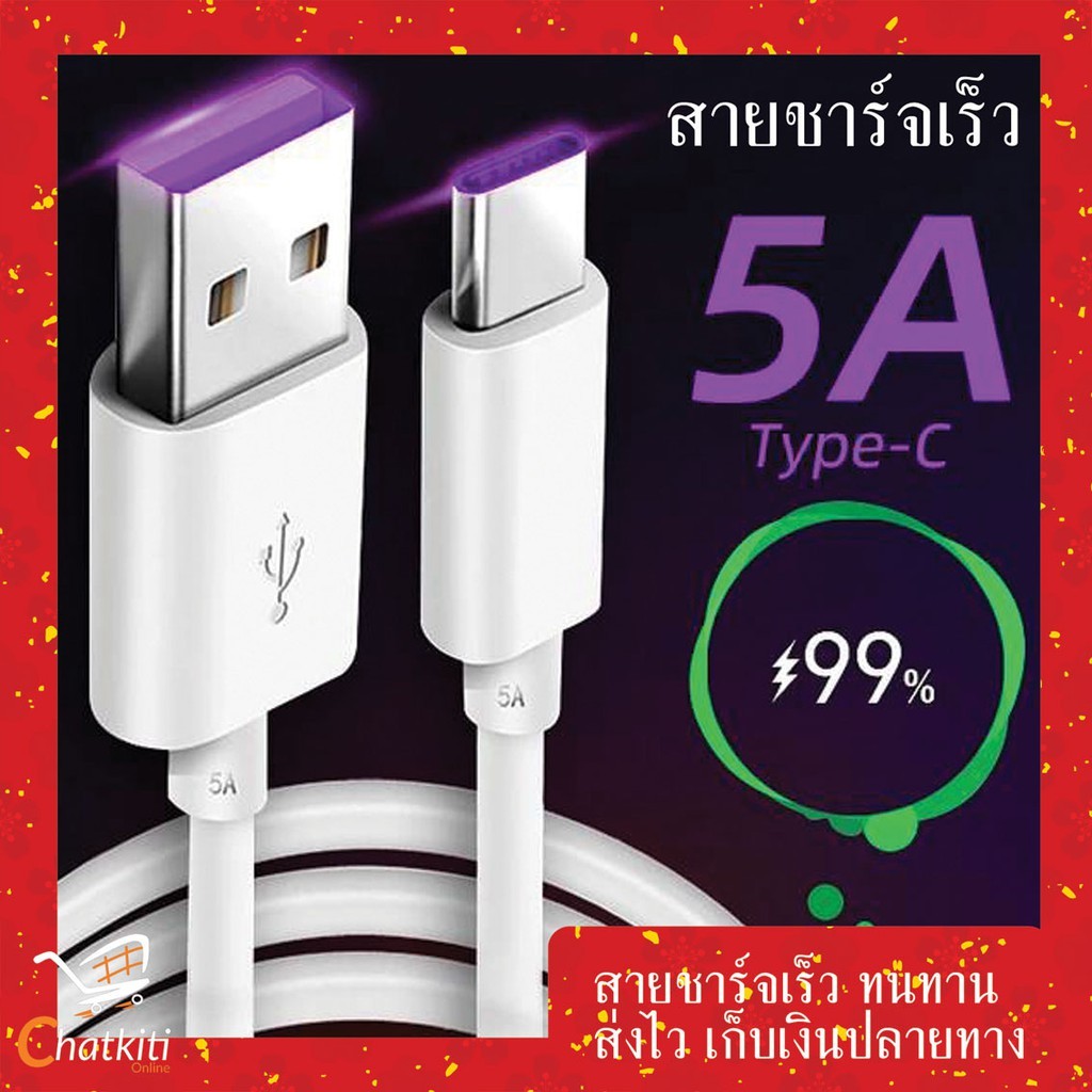 สายชาร์จ USB type C ยาว 1m/1.5m/2m/3m Super Fast Charging Cable USB 5A