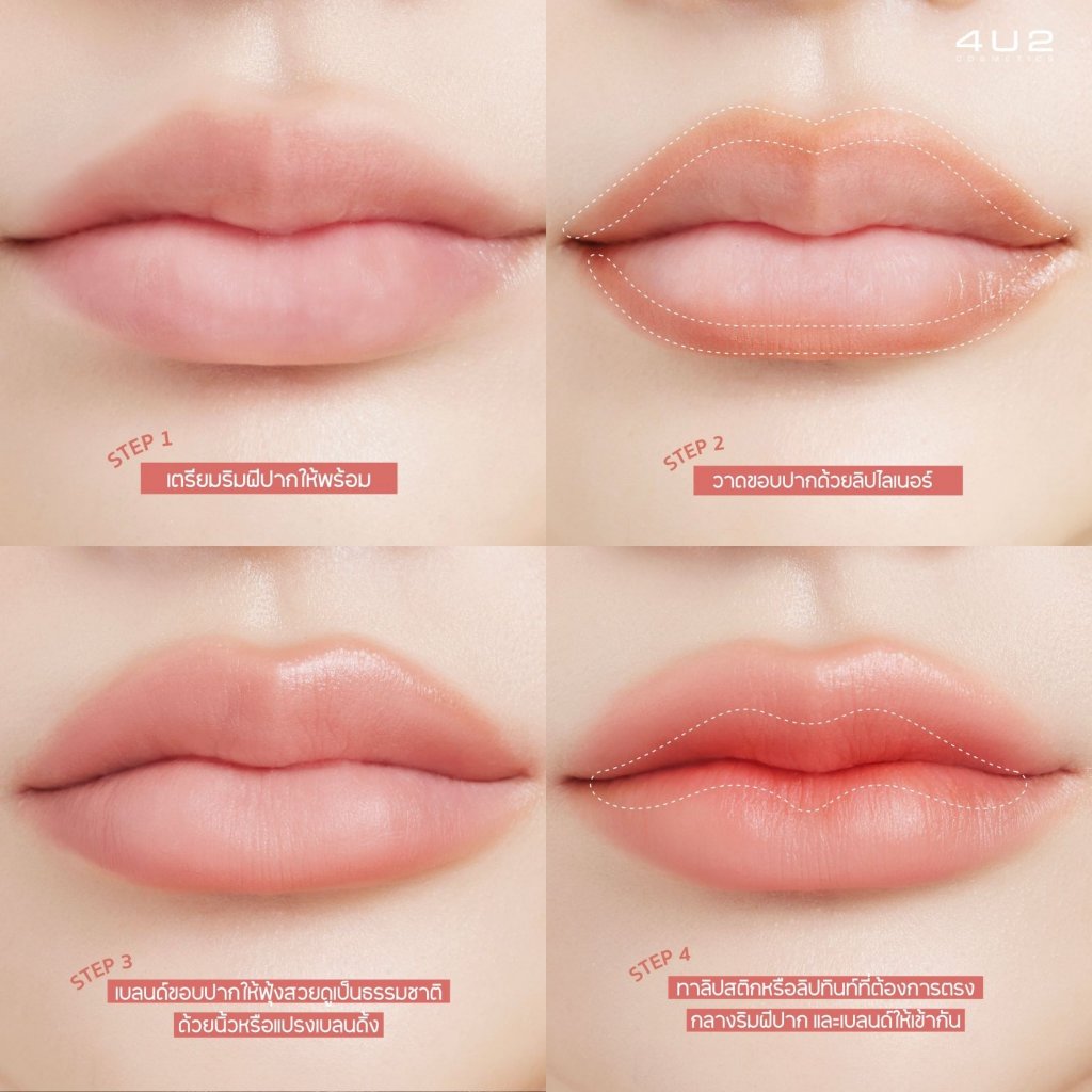 ส่งฟรีไม่ใช้โค้ด ดินสอเขียนขอบปาก 4U2 Blending Lip Liner โฟร์ยูทู ลิป 4U2 ลิปไลเนอร์ เขียนขอบปาก เบลอขอบปาก เนื้อแมท