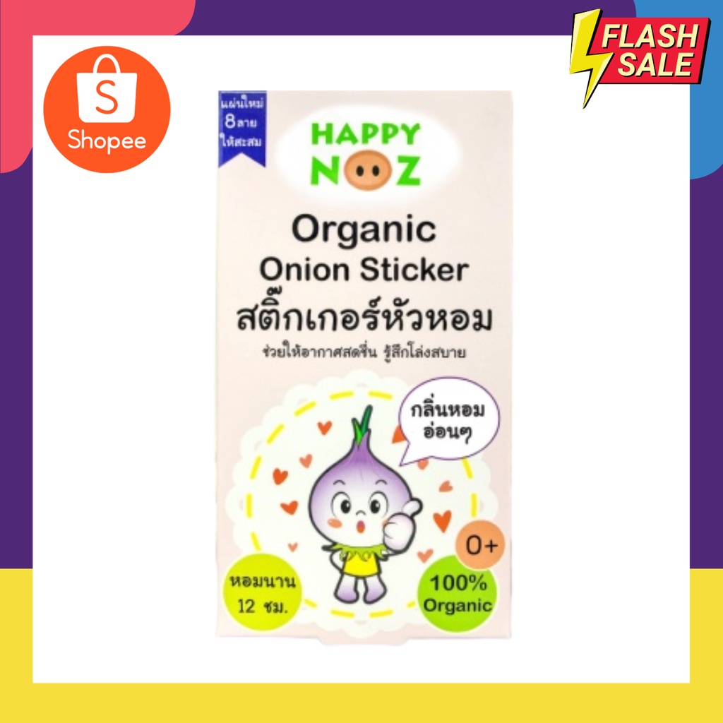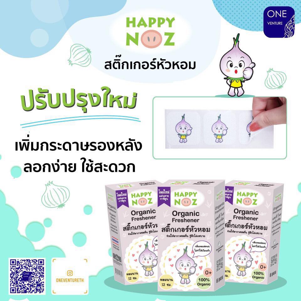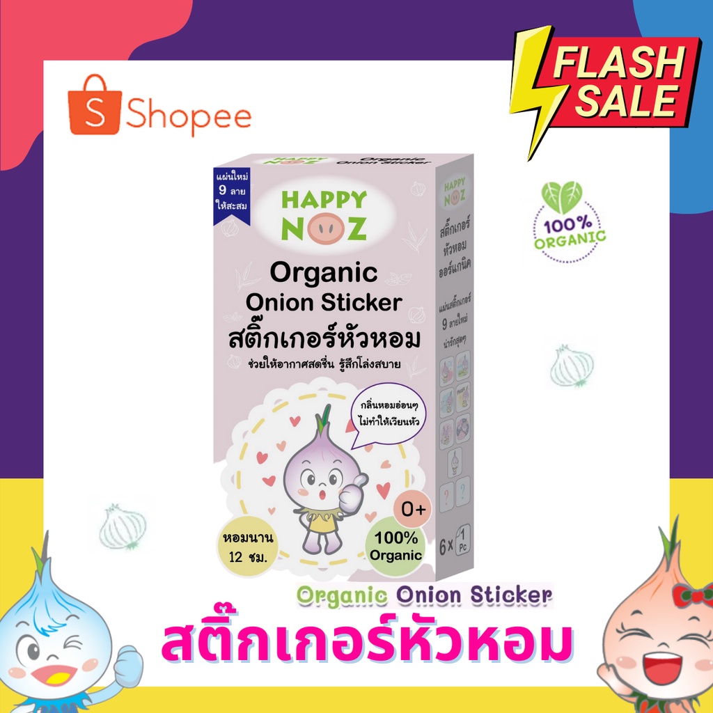 สติ๊กเกอร์หัวหอม แผ่นแปะหัวหอม ยี่ห้อ Happy Noz (แฮปปี้ โนส) แผ่นแปะหัวหอม ออร์แกนิค 100% (1 กล่อง มี 6 แผ่น) ราคาพิเศษ