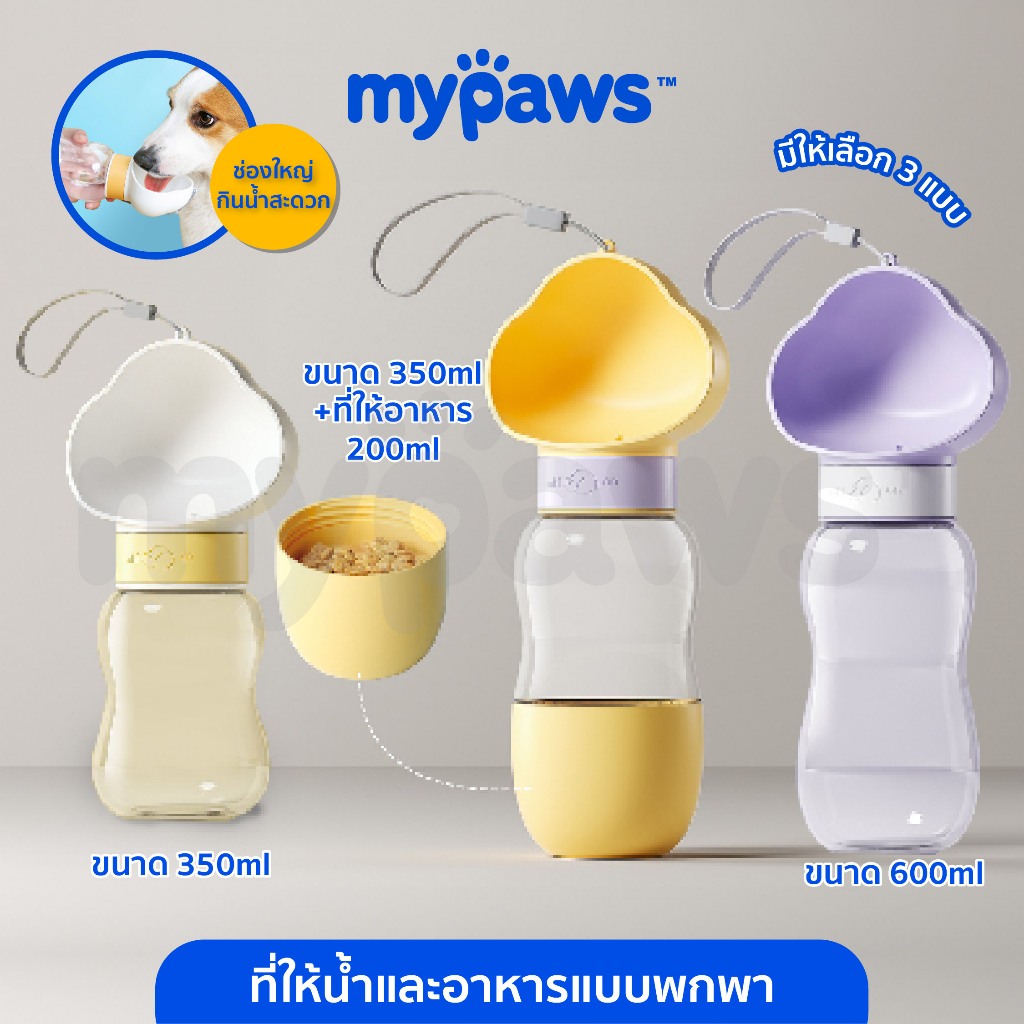 My Paws ที่ให้น้ำแบบพกพา ที่ให้น้ำลายก้อนเมฆ🐶🐱 มีทั้งหมด 3 ขนาด 1.) 350 ml 2.) 600 ml 3.) 350 น้ำ +200 ml ที่ให้อาหาร มีทั้งหมด 3 สี 1.) ขาว 2.) เหลือง 3.)ม่วง รายละเอียด - 🌈 ที่ให้น้ำพกพาสำหรับสัตว์เลี้ยงสีสันน่ารัก พกพาสะดวก - 🌈 รุ่นนี้มีสายคล้องแขนไปด้วยทำให้เวลาพาน้องๆไปข้างนอกพกพาได้