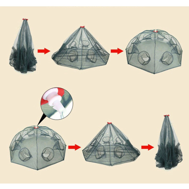 ... ,ปู,กุ้ง • วัสดุโครงเหล็กและตาข่ายไนล่อน,ทนทาน • สามารถพับเก็บได้ น้ำหนักเบาและพกพาได้