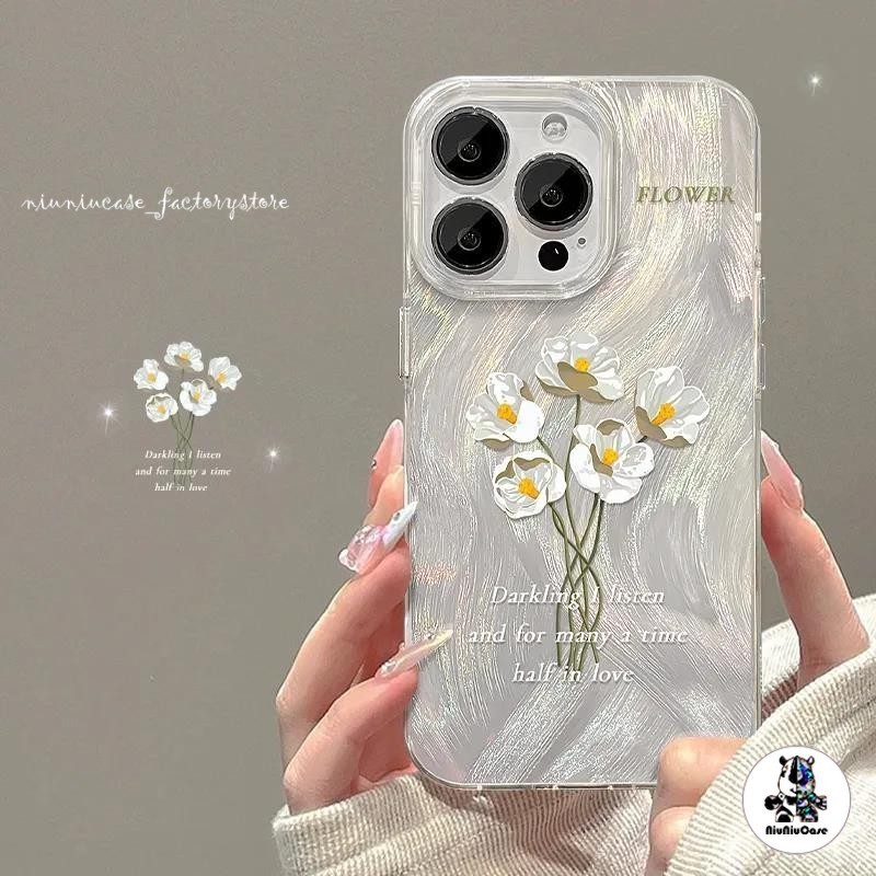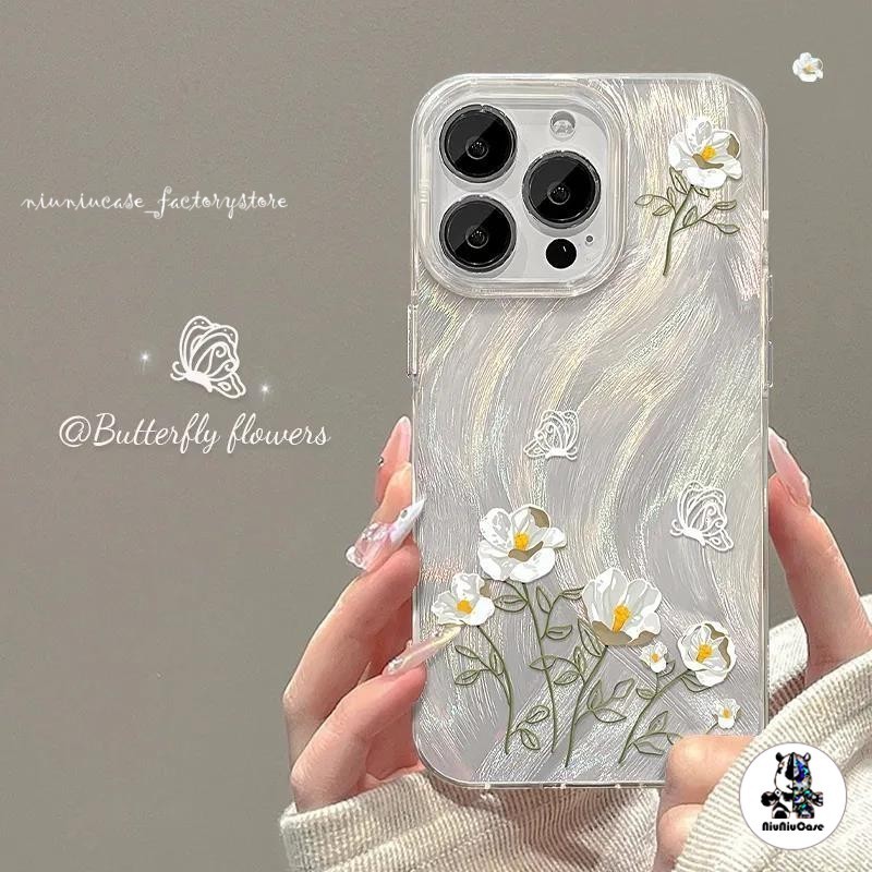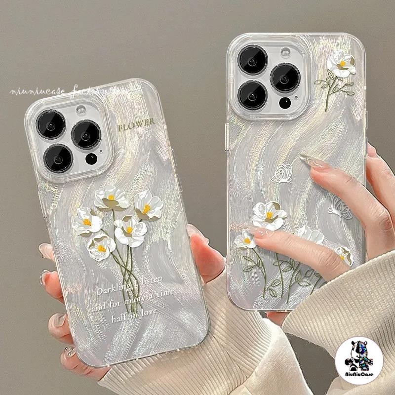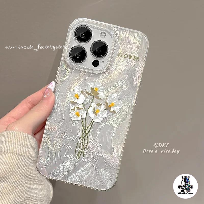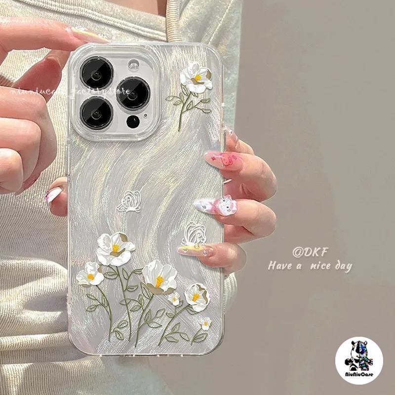 For iPhone 11 13 Lilies เคส ไอโฟน เลเซอร์โฮโลแกรมหรูหราขนสีเงิน TPU For iPhone 15 14 12 Pro Max 11 XR X XS Max 7 8 PLUS