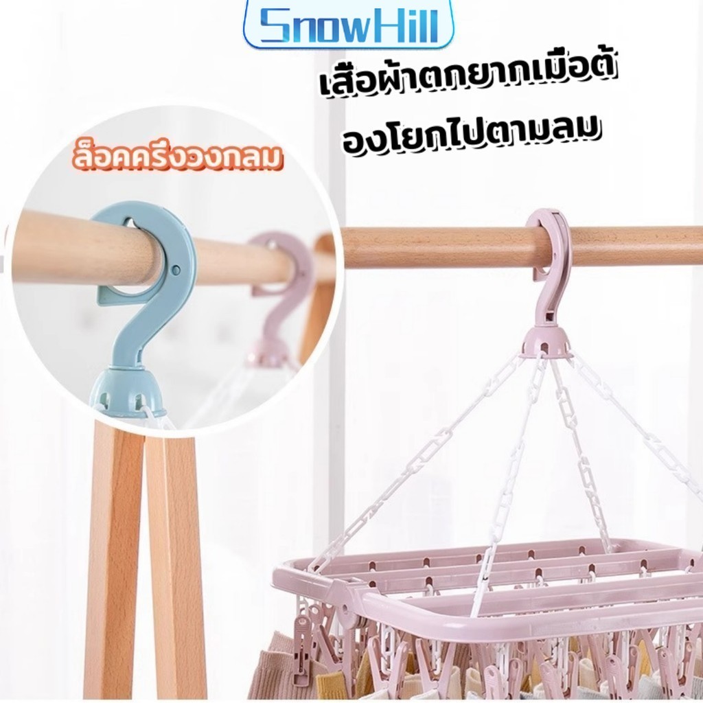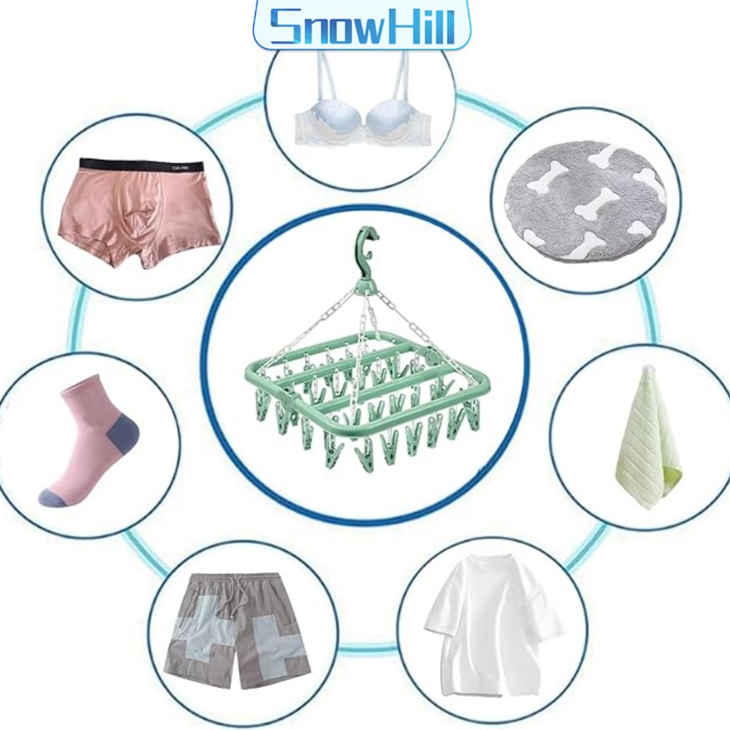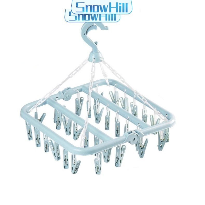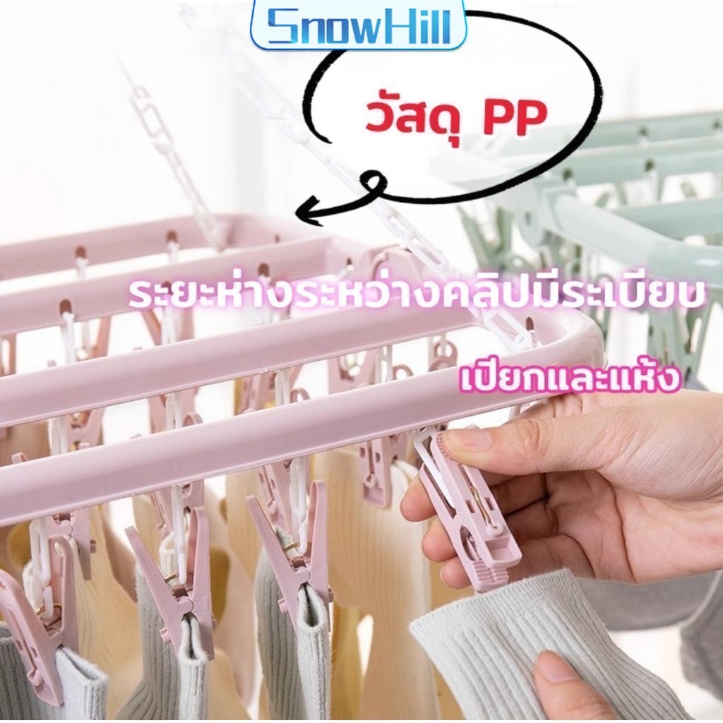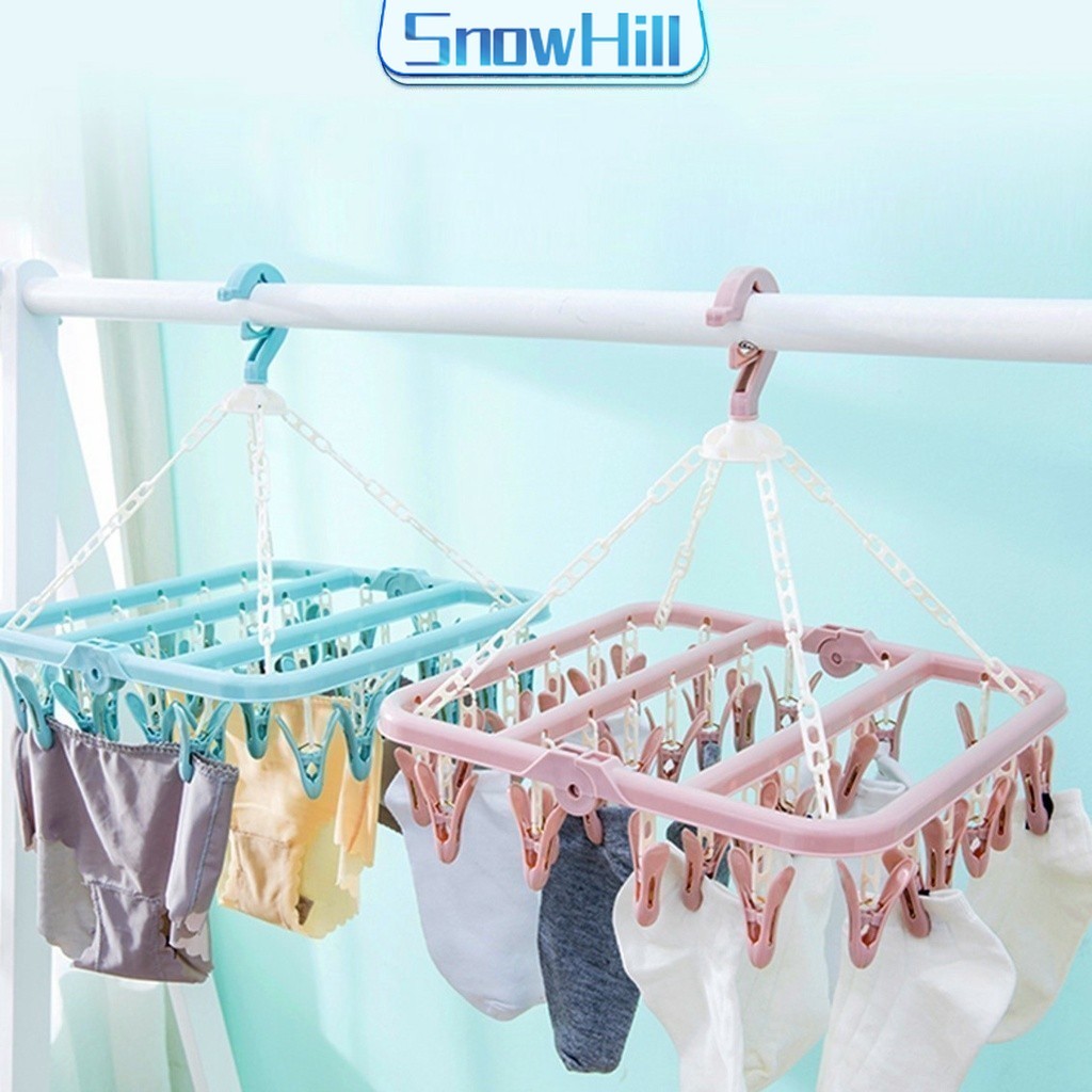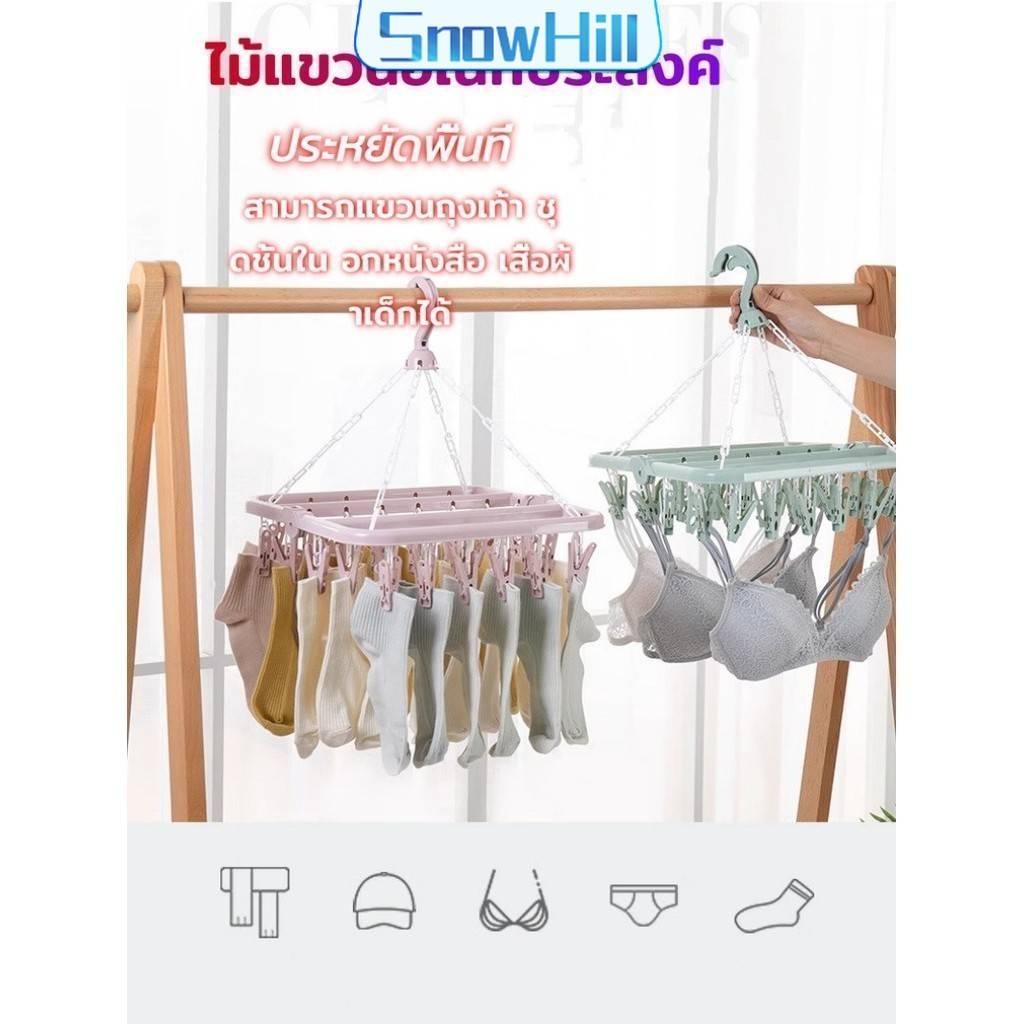 ตากผ้าเหลี่ยม พับได้ ที่แขวนห่วงหนีบผ้าพลาสติก แขวนได้ทั้งผ้าเปียก ตากชุดชั้นใน ถุงเท้า Socks Hanger with 12/32 clips