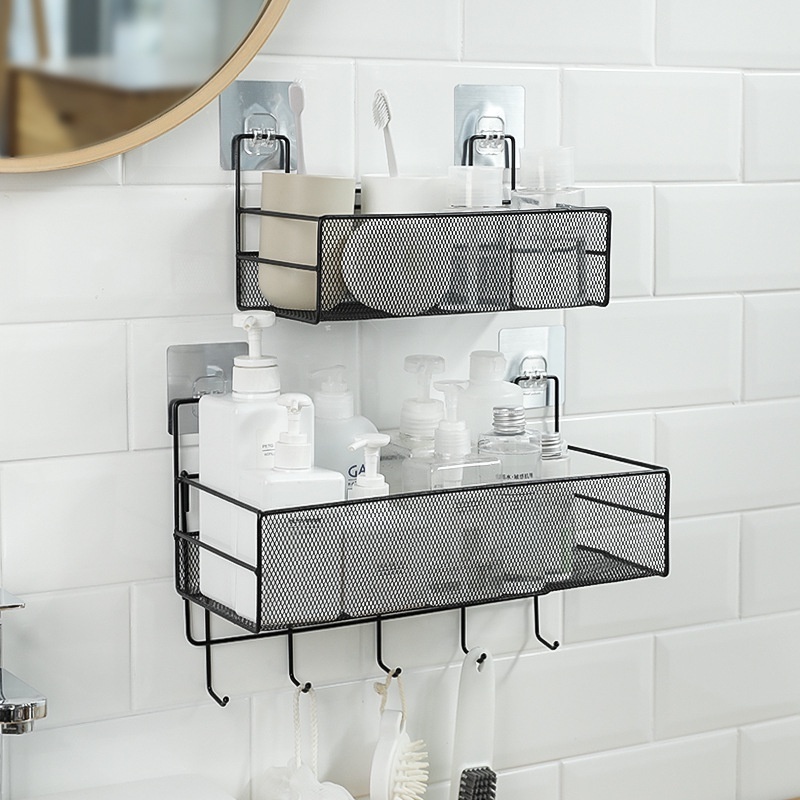 1แถม1 🎀พร้อมกาว🎀 ชั้นวางติดผนัง ตรงจากโรงงาน มีตะขอ ไม่ต้องเจาะผนัง ในห้องน้ำ กาวแน่น