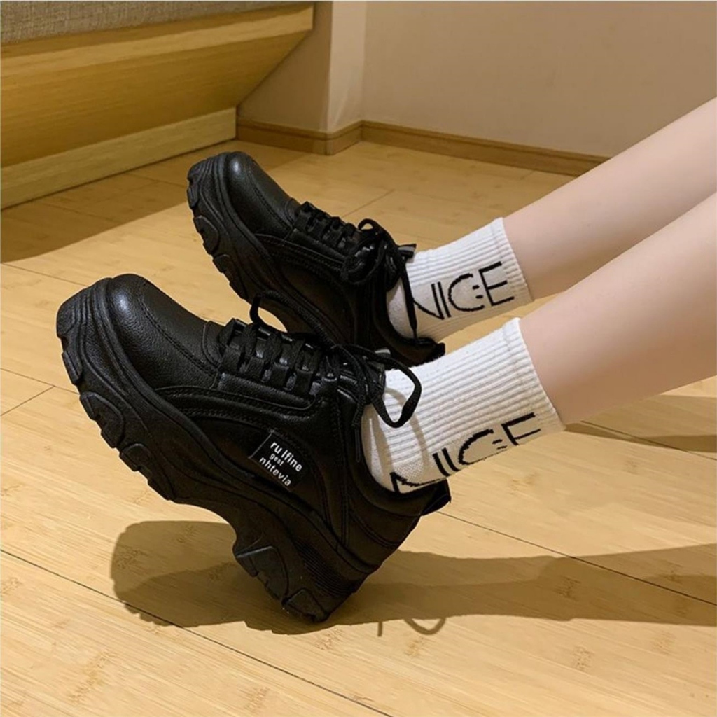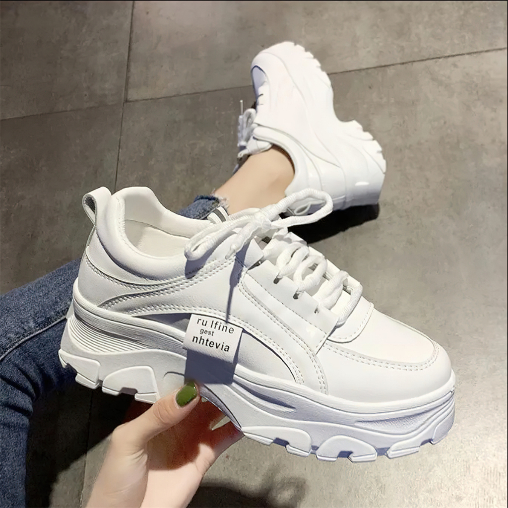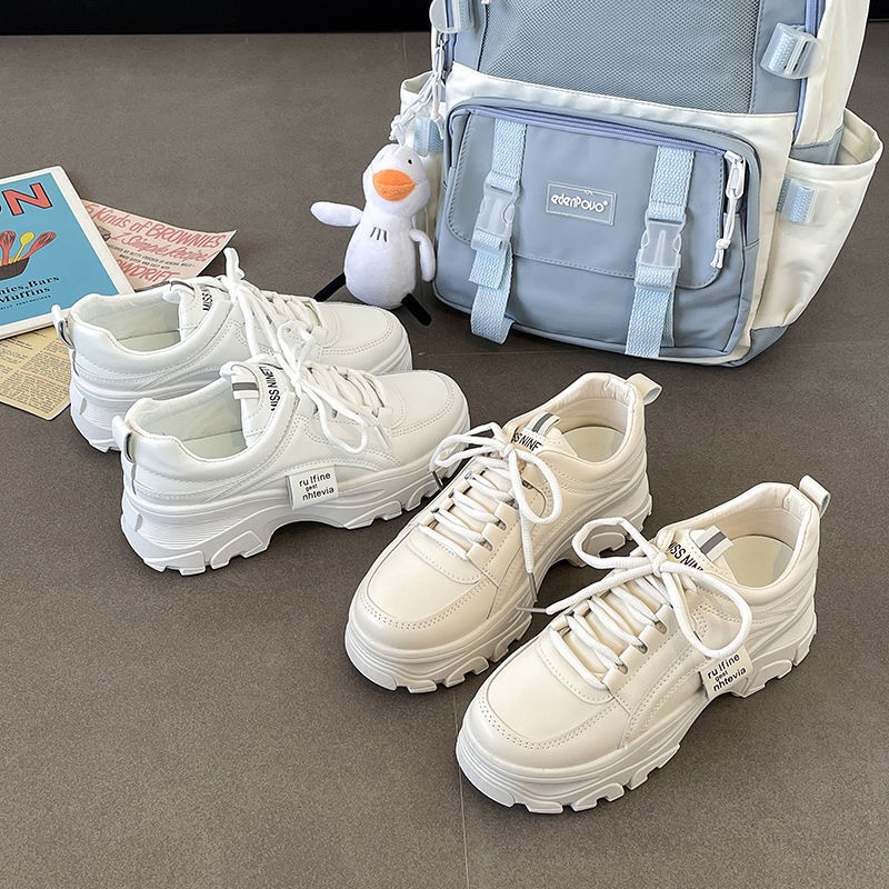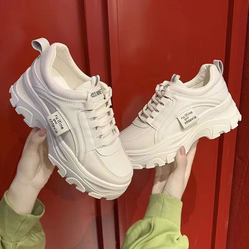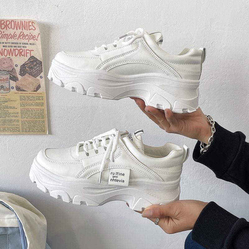 TIKP พร้อมส่ง🚚รองเท้าผ้าใบผู้หญิง พื้นหนา แฟชั่น sneaker เพิ่มความสูง กีฬาลำลอง มีเชือก