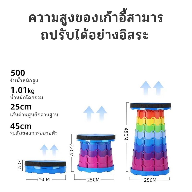 สตูลยืดไสลด์พับกลางแจ้งชื่อ: สตูลยืดไสลด์พับกลางแจ้ง วัสดุ: วัสดุ PP ขนาด: กว้าง 25 ซม. สูง 7-45 ซม. ปรับความสูงได้หลังการหดตัว 6 ซม น้ำหนัก: 1KG คุณสมบัติ: พับเก็บได้ฟรี, เปิดอย่างรวดเร็ว, ที่เก็บของแบบพกพา, ปรับแต่งความสูงได้ การใช้ประโยชน์: ตั้งแคมป์ตกปลากลางแจ้ง คุณสมบัติ: 1. การขยายตัว