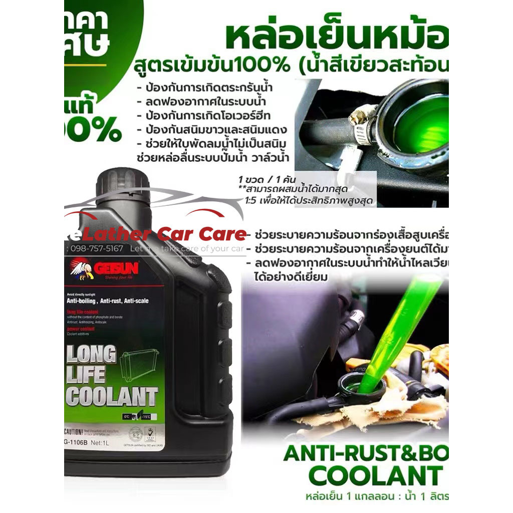 GETSUN 1106B/1105B Super Long Life Coolant ️ น้ำยาหล่อเย็นเครื่องยนต์ GETSUN 1106B/1105B Super Long Life Coolant ️ น้ำยาเติมหม้อน้ำ ที่มาพร้อมกับสูตรเข้มข้นสีเขียว 1 ลิตร/2 ลิตร เพื่อปกป้องชิ้นส่วนของเครื่องยนต์และหม้อน้ำอย่างเต็มประสิทธิภาพ ️ ประโยชน์ของ GETSUN 1106B/1105B Super Long Life Coola