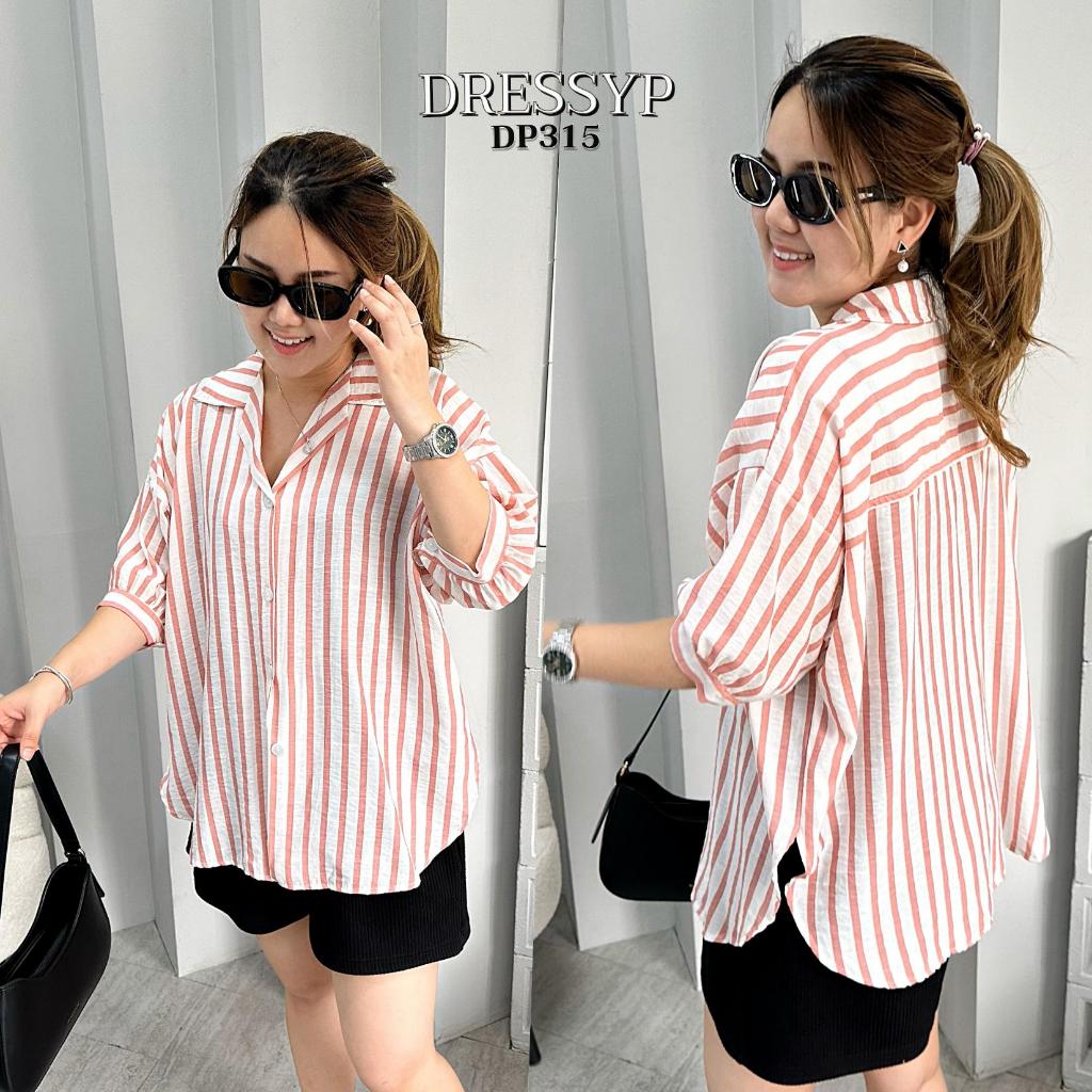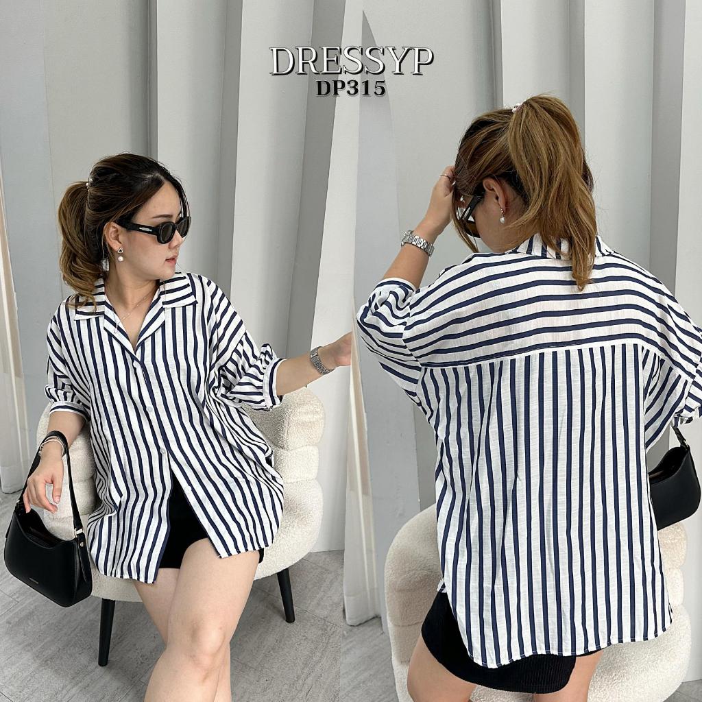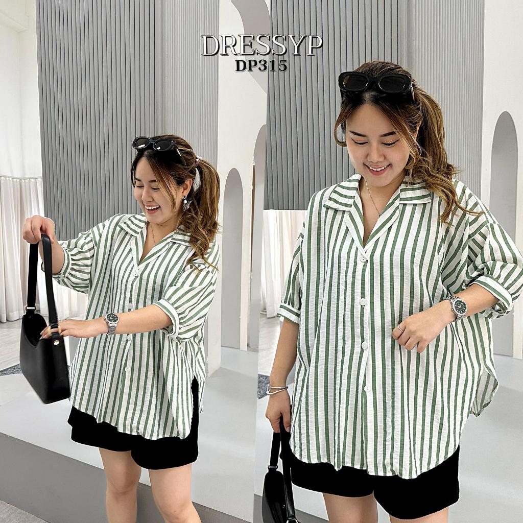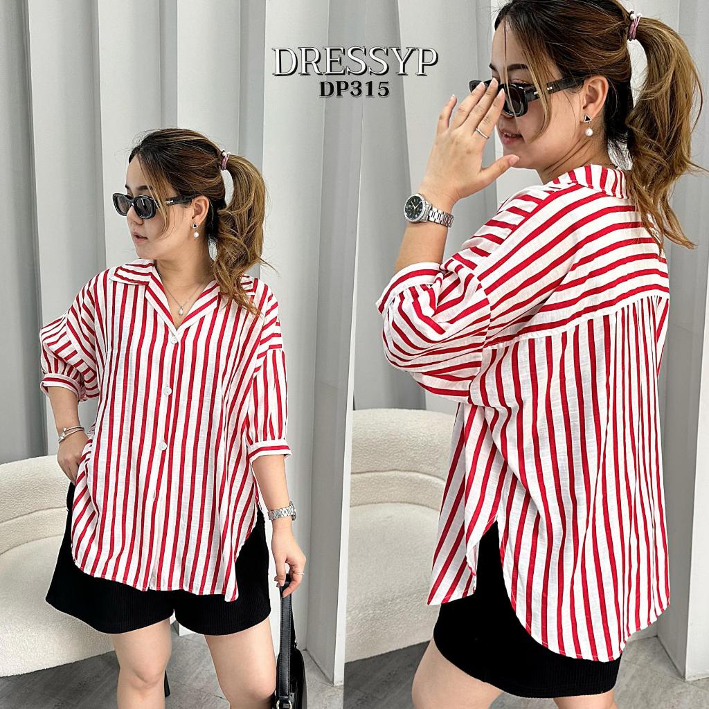 DP315 เสื้อเชิ้ต คอปก ผ้าสลาฟทอ ริ้วใหญ่ ทรงสวย เเมชง่าย ใส่สบาย