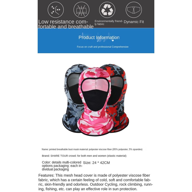 ... และคอได้อย่างเต็มที่ทำให้ใกล้ชิดกับร่างกายและสะดวกสบายยิ่งขึ้นน้ำหนักเบาเป็นพิเศษและดูแลรักษาง่าย 2.แม้ว่าจะบาง แต่ก็มีความยืดหยุ่นสูงและเหมาะสำหรับกันฝุ่นและแมลงการใช้ภายในหมวกกันน็อคสามารถปกป้องศีรษะหูและปากได้ดีขึ้นความยาวสามารถพันคอเพื่อป้องกันยุงกัดได้เต็มที่ การป้อนและฝุ่นละอองจากทางเข้า 3.ใช้ในหลายสาขาเช่นการจำลอง CS, การตกปลา, การป้องกันลมและทราย, การป้องกันแสงแดด, การป้องกันฝุ่นในสภาพแวดล้อมพิเศษ, การเล่นสกีอัลไพน์, การป้องกันศีรษะนักกีฬาแข่งรถ ฯลฯ