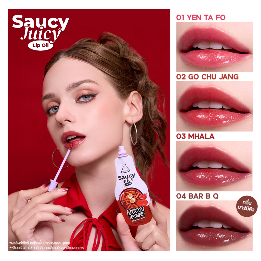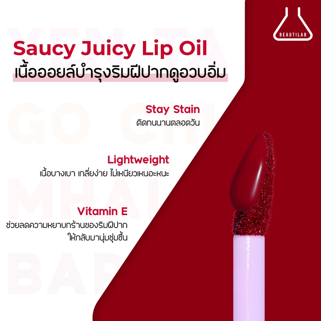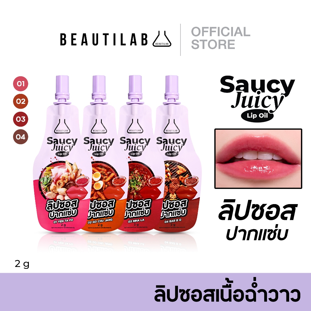 [Set 4 สี] BEAUTILAB Saucy Juicy Lip Oil ลิปซอสปากแซ่บ เซต 4 สี ฟินิชฉ่ำวาว รูปแบบซอง