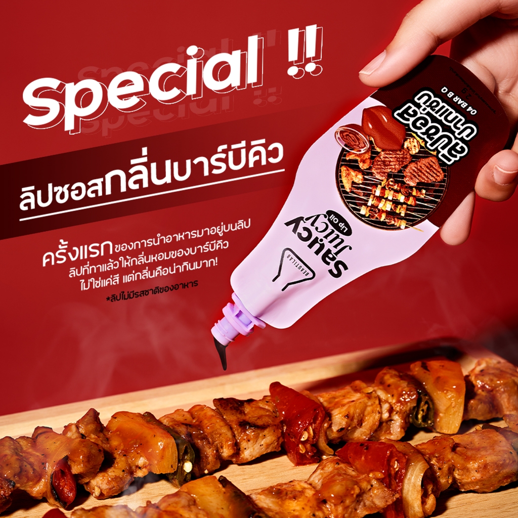 ... กลิ่นบาร์บีคิว *ตัวลิปไม่มีรสชาติของอาหาร . 🛒 2 g . Ingredients: WATER, DIISOSTEARYL MALATE, DIPHENYLSILOXY PHENYL TRIMETHICONE, OCTYLDODECANOL, BIS-DIGLYCERYL POLYACYLADIPATE-2, GLYCERIN, PHYTOSTERYL/ISOSTEARYL/CETYL/STEARYL/BEHENYL DIMER DILINOLEATE, LAURYL PEG-10 TRIS(TRIMETHYLSILOXY) SILYLETHYL DIMETHICONE, HYDROGENATED POLYISOBUTENE, POLYSORBATE 60, SORBITAN ISOSTEARATE, HYDROXYETHYL ACRYLATE/SODIUM ACRYLOYLDIMETHYL TAURATE, TOCOPHERYL ACETATE, SODIUM HYALURONATE, ATELOCOLLAGEN, PALMITOYL TRIPEPTIDE-1, BUTYLENE GLYCOL, PHENOXYETHANOL, CHLORPHENESIN, ETHYLHEXYL PALMITATE, SODIUM SACCHARIN, TRIS(TETRAMETHYLHYDROXYPIPERIDINOL) CITRATE, BENZOTRIAZOLYL DODECYL P-CRESOL, TRIBEHENIN, FRAGRANCE, SILICA DIMETHYL SILYLATE, PENTYLENE GLYCOL, SODIUM CHONDROITIN SULFATE, PENTAERYTHRITYL TETRAISOSTEARATE, ISOHEXADECANE (MAY CONTAIN +/- CI 77891, CI 77492, CI 45380, CI 14700, CI 17200, CI 15985, CI 19140, CI 42090, CI 45410) . เลขที่จดแจ้ง : 11-1-6700001609