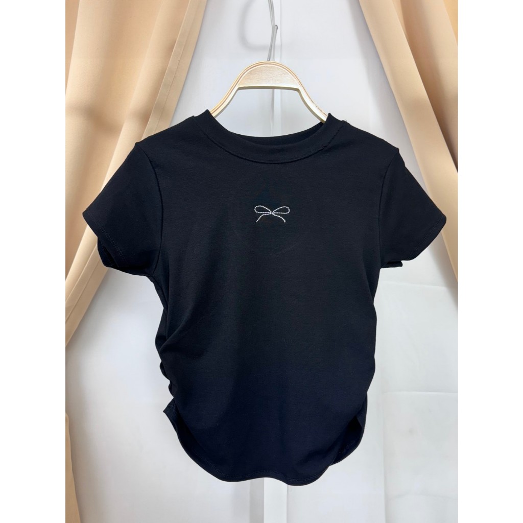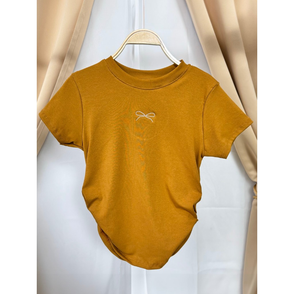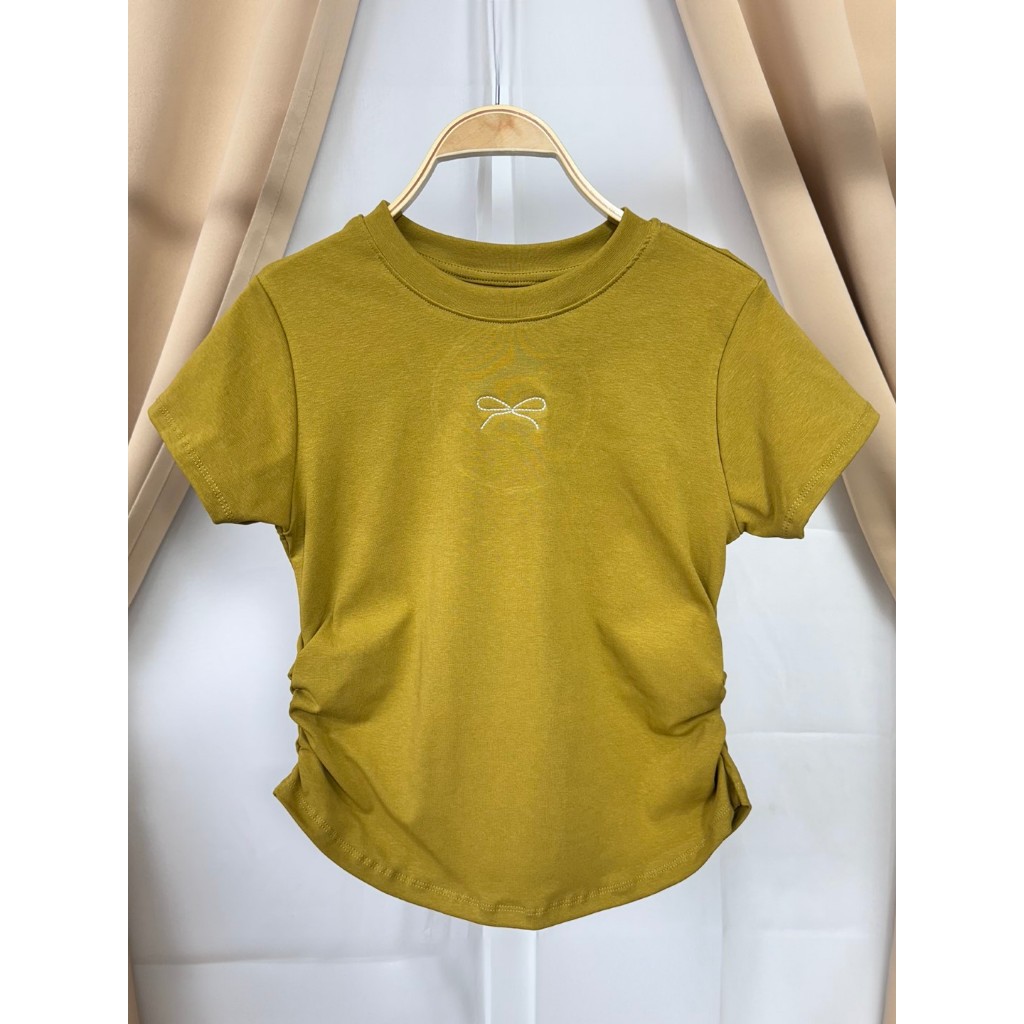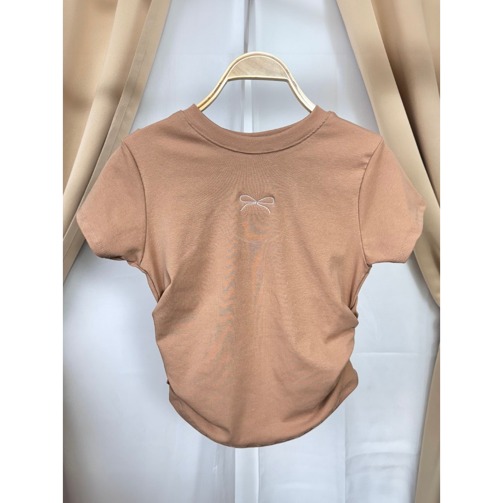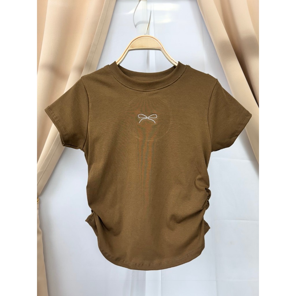 🌈MesubShop🌈เสื้อครอปแต่งย่นข้าง ปักโบว์ช่วงอก BABY TEE 😻 ผ้ายูนิโคล่ยืดตามตัว ทรงน่ารัดใส่ได้ทุกวัน รุ่น ตาแป๋ว