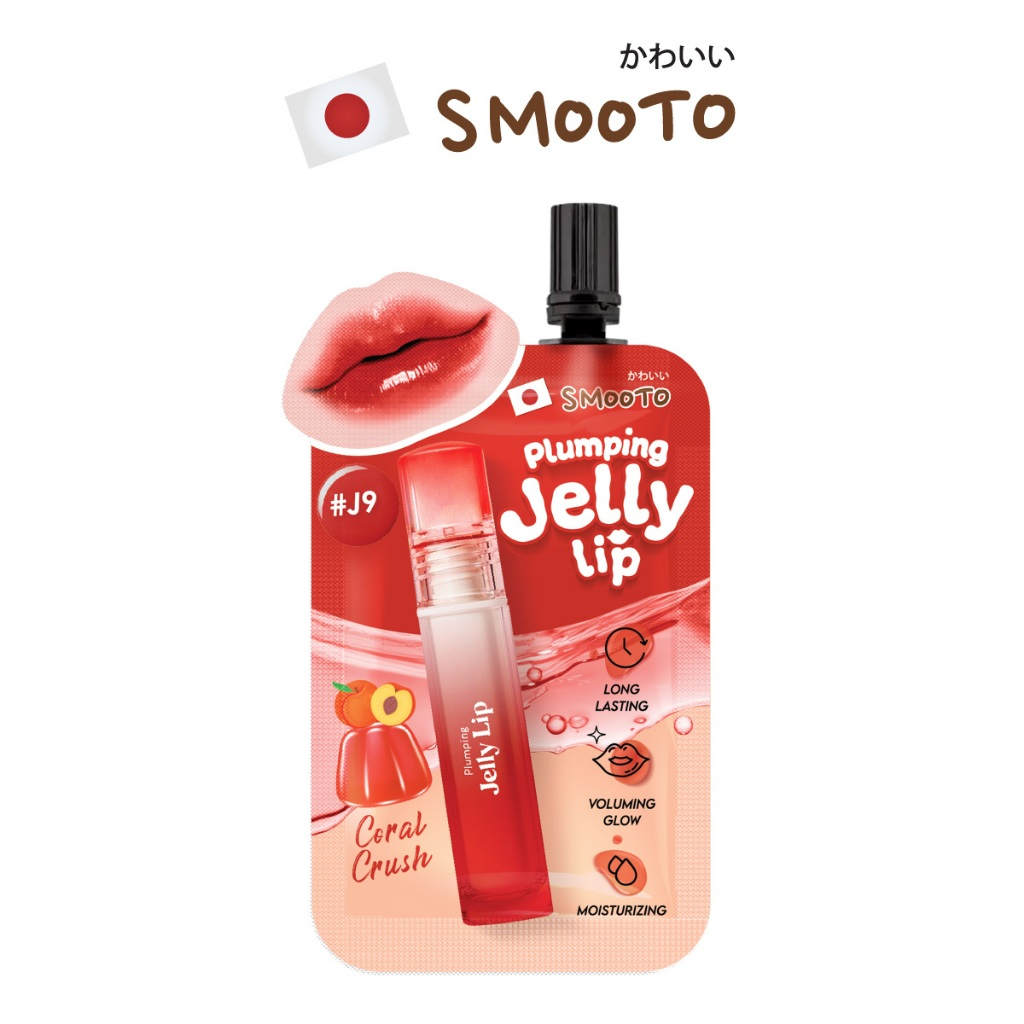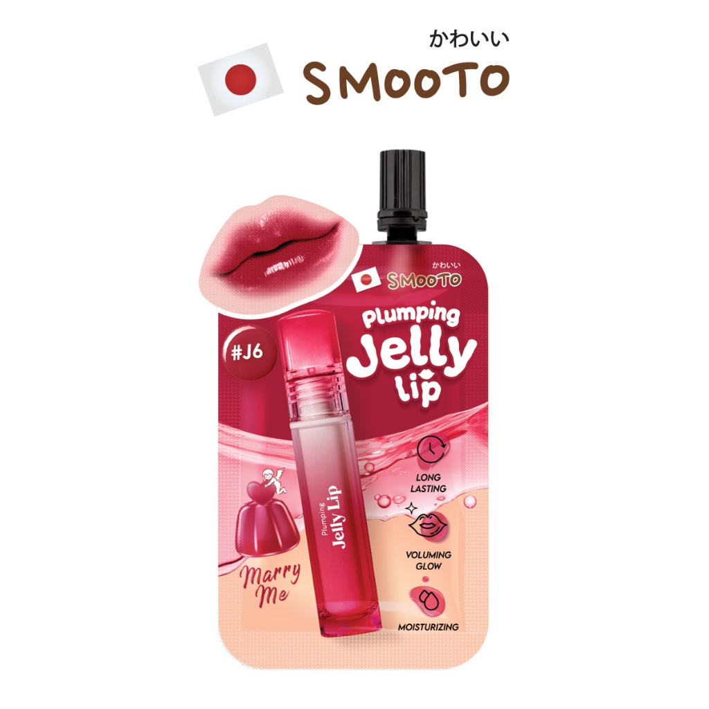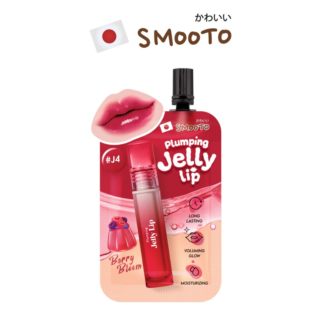 สมูทโตะ พลัมพิ่ง เจลลี่ ลิป (ลิปเบอร์ J1, J2, J4, J6, J8, J9) ลิปทินท์เนื้อเนียนนุ่มละมุน เมื่อทาลงบนริมฝีปากจะเปลี่ยนเป็นเนื้อเจลลี่ฉ่ำวาว ดุจเคลือบแก้วคริสตัลด้วยเทคโนโลยี Mirror Gloss Network Film ที่สร้างชั้นฟิลม์ออยล์พิเศษเคลือบบนริมฝีปากถึง 4 ชนิด ผสานกับชั้นเม็ดสีแนบแน่น ให้สีสวยชัดต