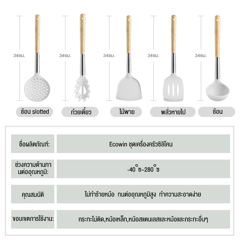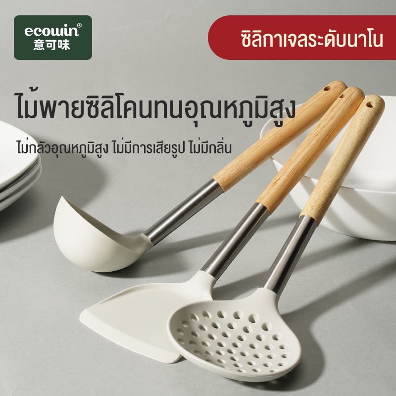 Ecowin ไม้พายซิลิโคน ไม่ติดผิว ทนความร้อนสูง สําหรับทําอาหาร ช้อน อาหาร ในครัวเรือน