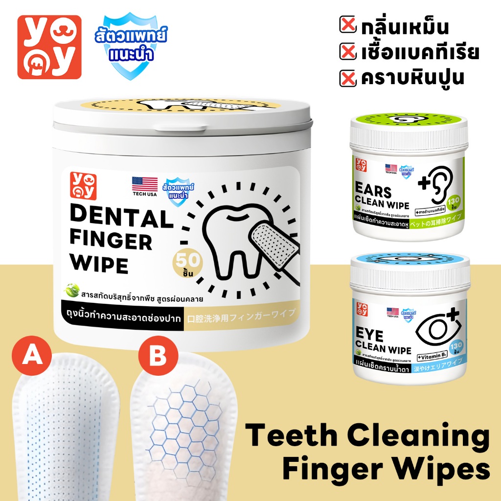 YoYo Pet: ผ้าเช็ดฟันแมว ฟันหมา บรรจุ : 50 ชิ้น/กระปุก 🌷 สะดวก ง่ายต่อการทำความสะอาด ประหยัดเวลา 🌷 ใช้แปรงฟัน เป็นประจำทุกวัน ช่วยทำให้คราบหินปูน คราบเหลือง ลดลงอย่างเห็นได้ชัด 🌷 ปลอกนิ้วมีความนิ่ม ไม่แข็ง จึงไม่เจ็บเหงือก 🌷 ไม่ทำร้ายเหงือก ไม่ทิ้งสารตกค้าง ไว้ในช่องปาก 🌷 ใช้แล้วทิ้ง ไม่คว
