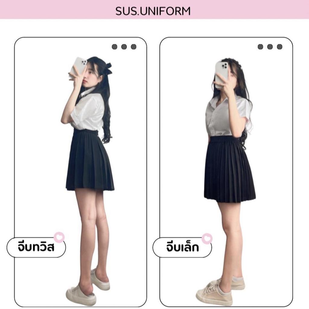 กระโปรงนักศึกษา กระโปรงพลีทมีกระเป๋า จีบทวิส/จีบเล็ก สีดำ