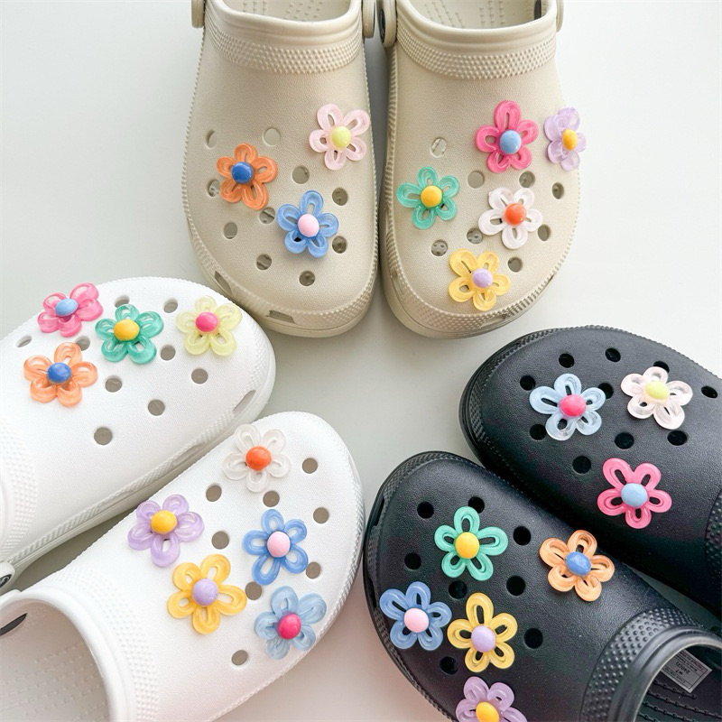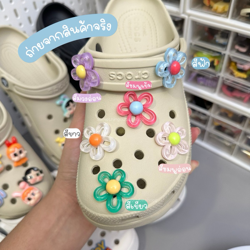 ส่งด่วนจากไทย 🌷 Jibbitz ตัวติดลายดอกไม้แบบเงาวาว โทนสีน่ารัก