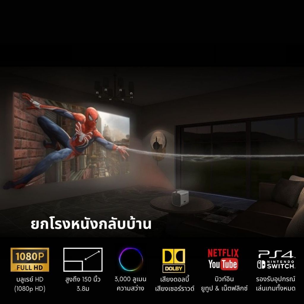 [รับประกัน 1 ปี] MONOZโปรเจคเตอร์Q3 Proพร้อมบลูทูธโฮมโปรเจคเตอร์โปรเจคเตอร์Android 11.0 LCD 720P 6000 ลูเมนUltra HD