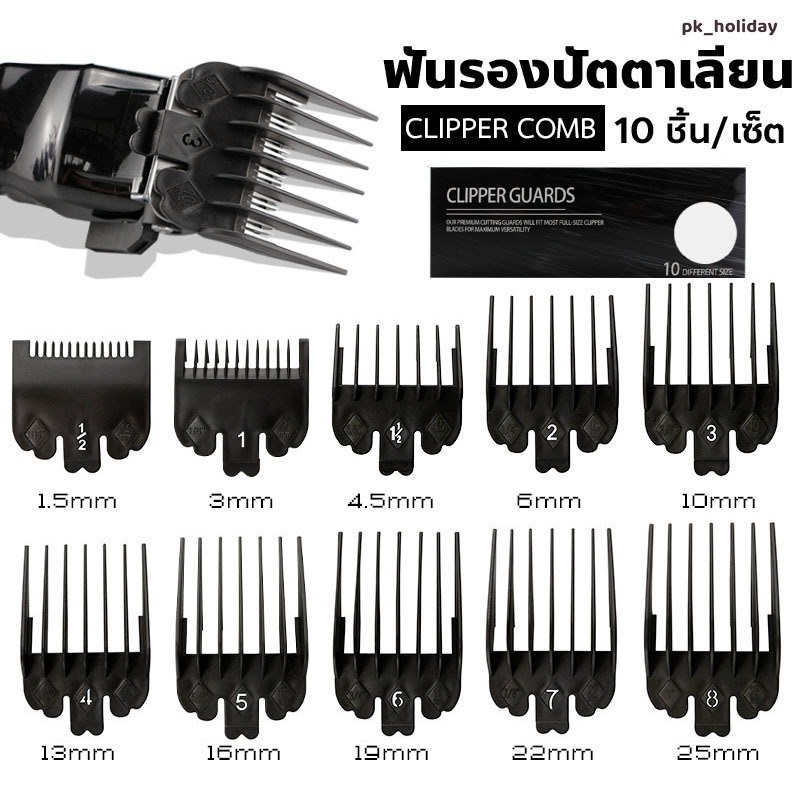 ... ทางช่องแชทได้เลยครับ ใช้ได้กับ WAHL DEBER KEMEI GEMEI GEEMY ENCHEN Xiaomi และปัตตาเลียนขนาดมาตรฐาน สำหรับฟันปัตตาเลียนพื้นฐานขนาด 4.5*3.8 cm (wide*height) ** ปัตตตาเลี่ยนที่มีฟันขนาดเล็กแบบกันขอบ ใช้ไม่ได้ ** รุ่น kemei km-5017/5018 ,kemei km-418/719/723 ใส่ไม่ได้ วัสดุ: พลาสติก ABS 1ชุด : 10ชิ้น ขนาด: 1.5/ 3/ 4.5/ 6/ 10/ 13 / 16/ 19/ 22/ 25MM (เบอร์ : 0.5, 1, 1.5, 2, 3, 4, 5, 6, 7, 8) หวีเอนกประสงค์หางแหลม ใช้ประโยชน์ได้หลากหลาย ใช้แบ่งผมเวลาหนีบผม ใช้แบ่งจับช่อเวลาทำผมทรงต่างๆ ขนาดหวี ยาว 21 CM. กว้าง 2.5 CM. _______________________________________________ ✔️ ตัดรอบชำระเงิน 23.59 น. จัดส่งสินค้าวันถัดไป (หรือคำสั่งซื้อก่อนขนส่งเข้ารับสินค้าจัดส่งภายในวันเดียวกันครับ) ✔️ ส่งสินค้าทุกวัน (จันทร์-อาทิตย์) _______________________________________________