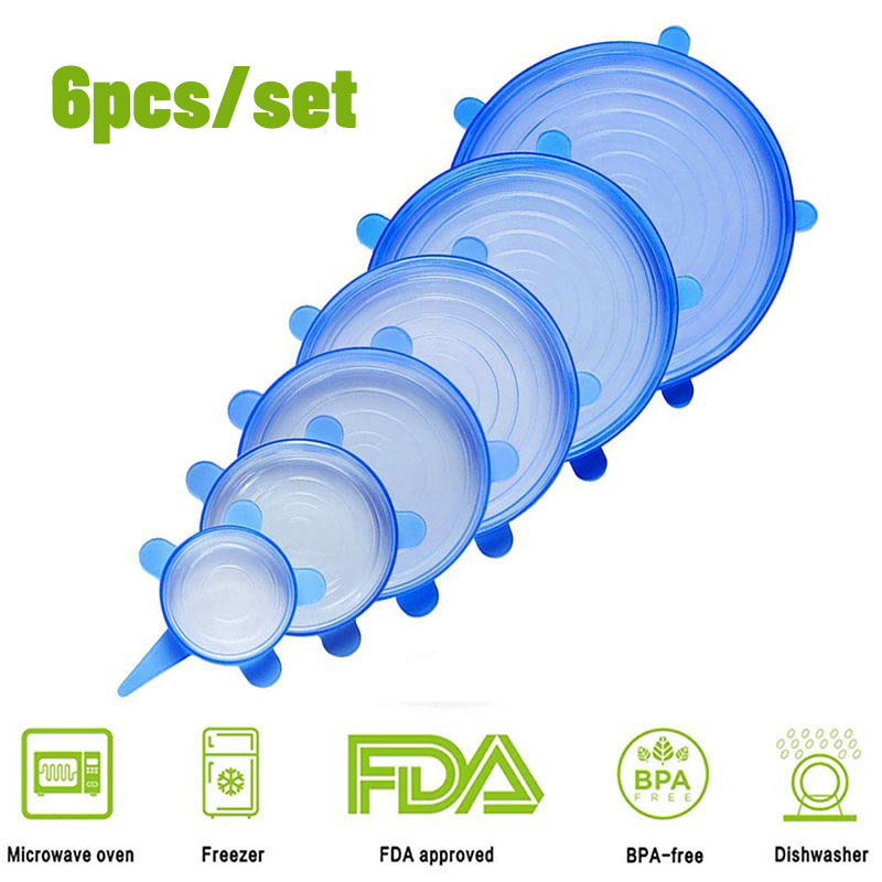 ฝาซิลิโคนยืดหยุ่น อเนกประสงค์ ใช้ซ้ําได้ สําหรับปิดชามอาหาร ผัก ผลไม้ 6 ชิ้น