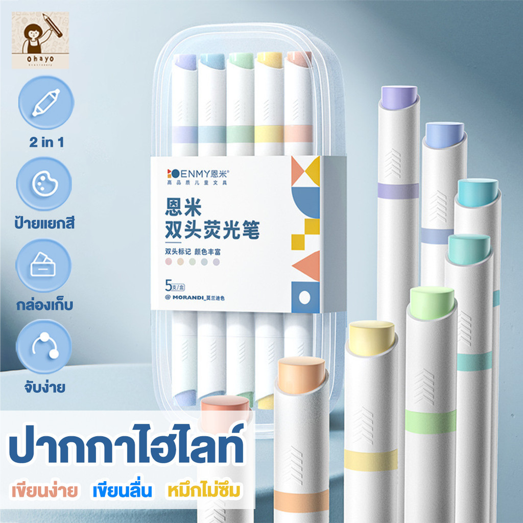 Ohayo (ยกแพ็ค 5แท่ง)ปากกาไฮไลท์ แพ็ค 5 แท่ง 2 หัว การเลือกหลากสี เน้นความนุ่มนวล สีสดใส