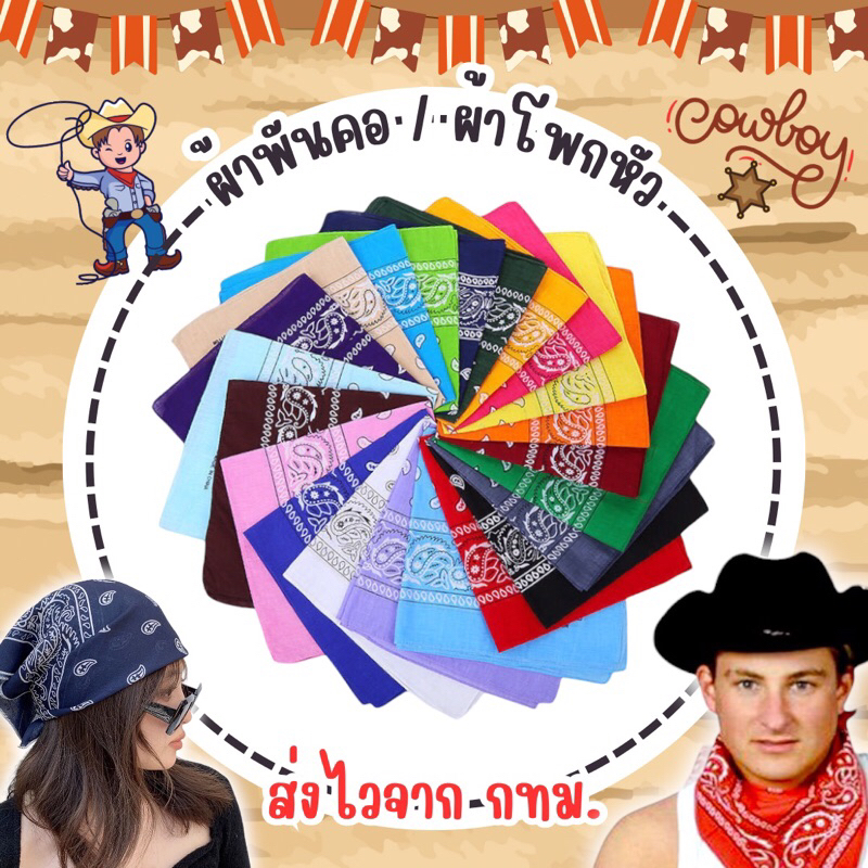 🔥ส่งไว จาก กทม.🔥ผ้าเช็ดหน้าวินเทจ 55x55cm. ผ้าคาวบอย ผ้าพันคอ Cowboy ผ้าโพกศรีษะ ฮิญาบ ผ้าเช็ดหน้าสไตล์ฮิปฮอป ลายลูกน้ำ