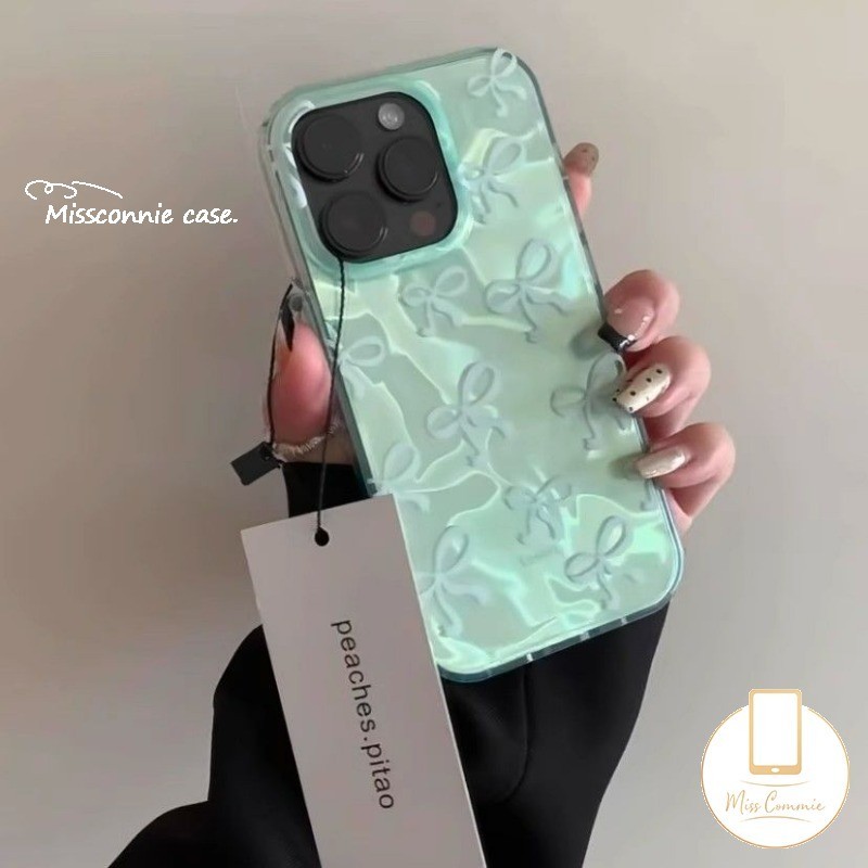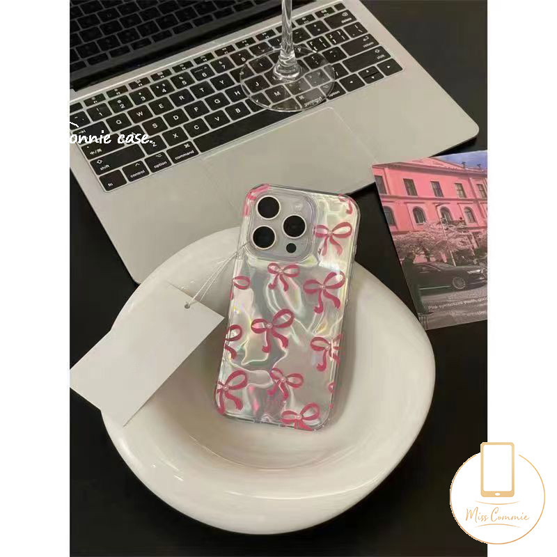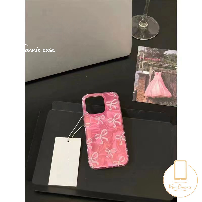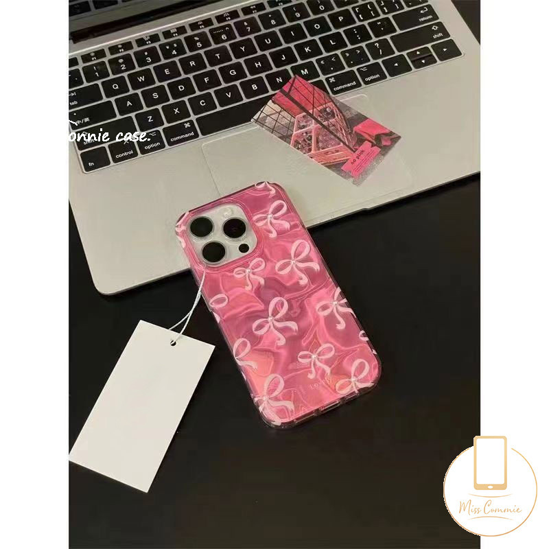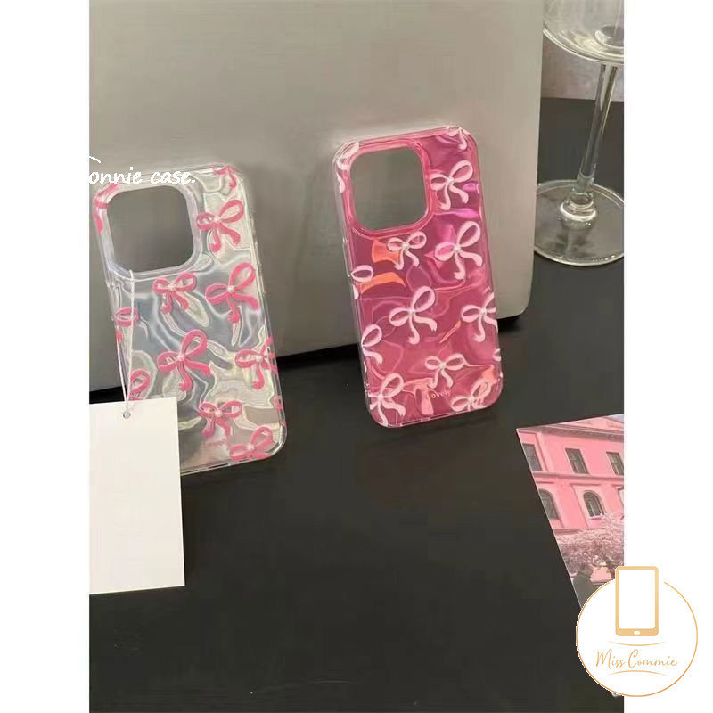 หรูหราสีสัน Ripple Luster นุ่มสําหรับ IPhone 11 16 13 15 14 12 Pro Max XR 16 7Plus 7 15 8 14 Plus X XS Max SE 2022 น่ารัก Bowknot สร้อยข้อมือฝาครอบ