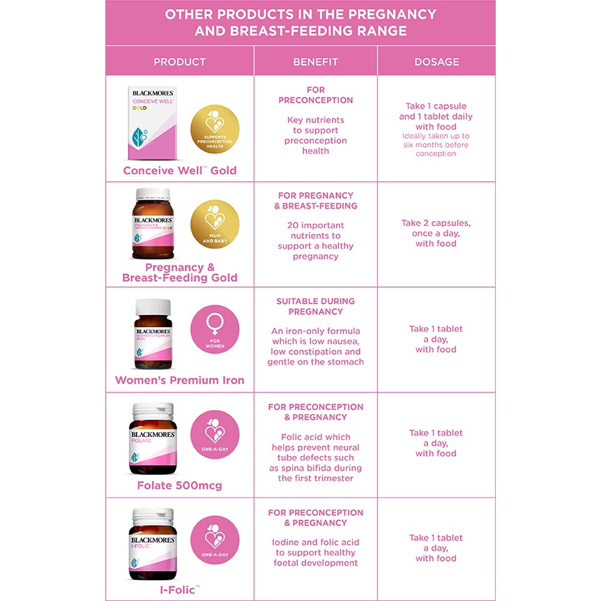 Blackmores Folate 500 mcg 90 cap โฟลิค แอซิด โฟลิค แอซิด เป็นวิตามินที่จัดอยู่ในกลุ่มวิตามิน บี พบมากในตับสัตว์ ผักขมฝรั่ง น้ำส้มคั้น และมีความจำเป็นต่อการสังเคราะห์ดีเอ็นเอ และอาร์เอ็นเอ รหัสพันธุกรรมในขบวนการแบ่งตัวของเซลล์ มีรายงานว่าการรับประทานอาหารที่อุดมด้วยโฟลิค แอซิด ในระหว่างการตั้งครรภ